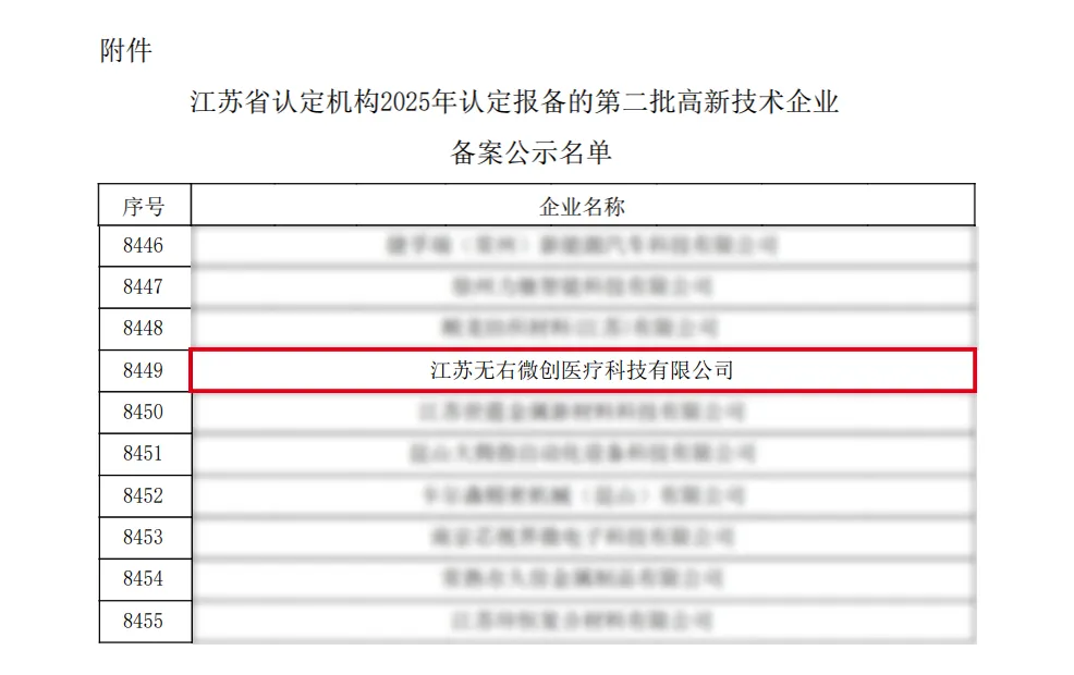 无右微创凭借在医用内窥镜系统领域的持续深耕和自主创新实力,先后获“ISO13485:2016医疗器械质量管理体系认证”、“江苏省高新技术企业”,标志着其在高端医疗设备研发、生产和服务领域的质量管理体系已全面符合国际监管,在科技创新、成果转化与产业服务领域的综合实力获得国际级权威认可,产业创新实力卓著。