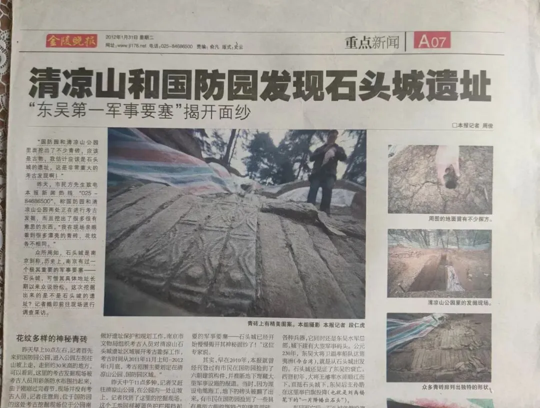 2010年5月笔者在清凉山发现两处六朝遗迹,直接帮助了南京市考古所对石头城遗址的寻找。