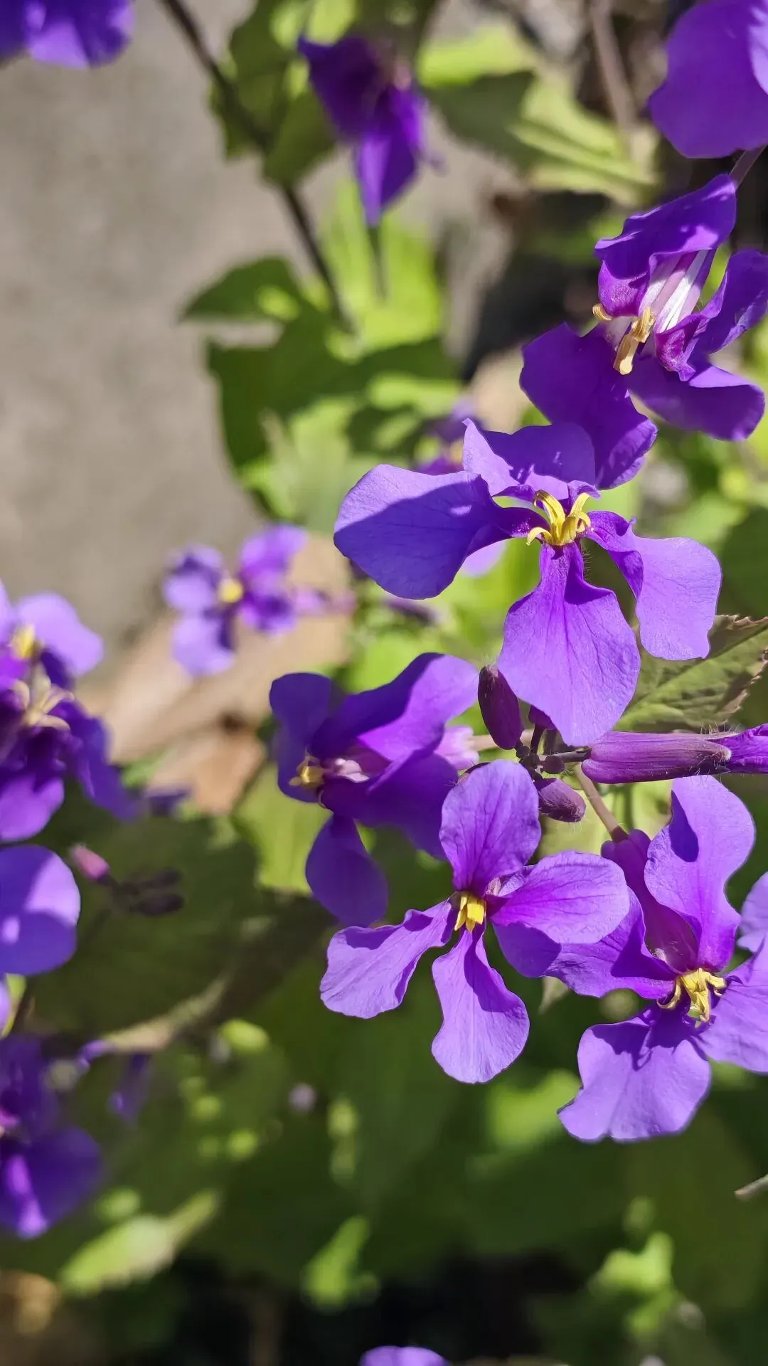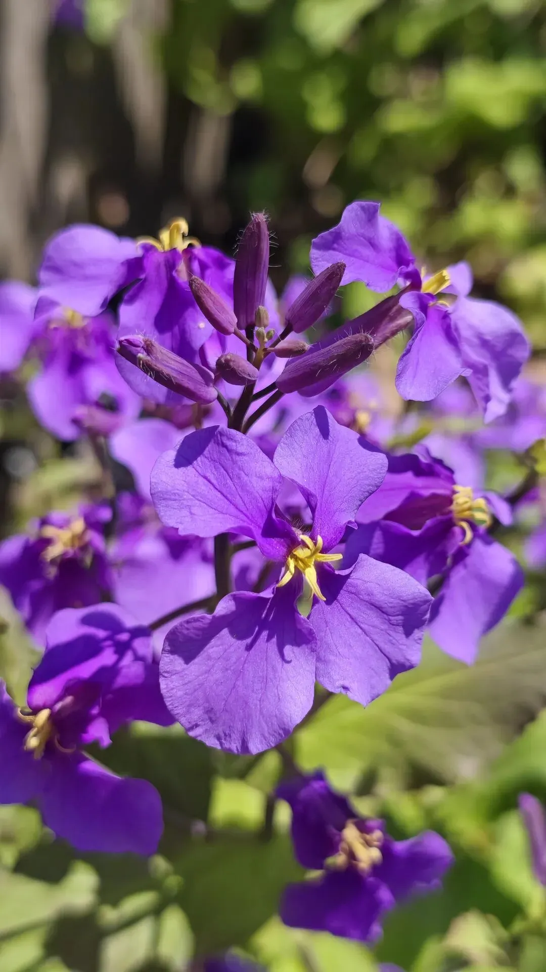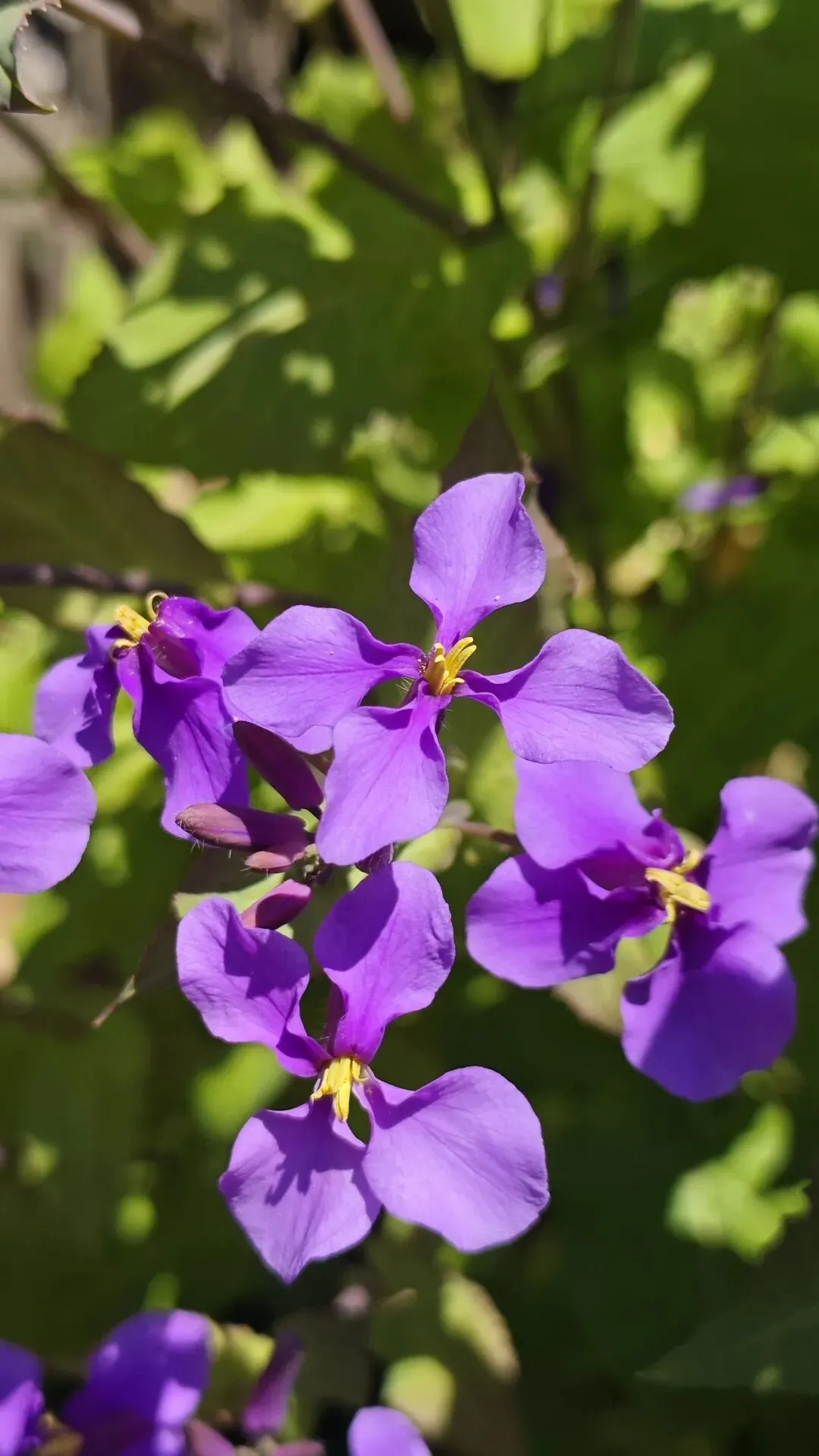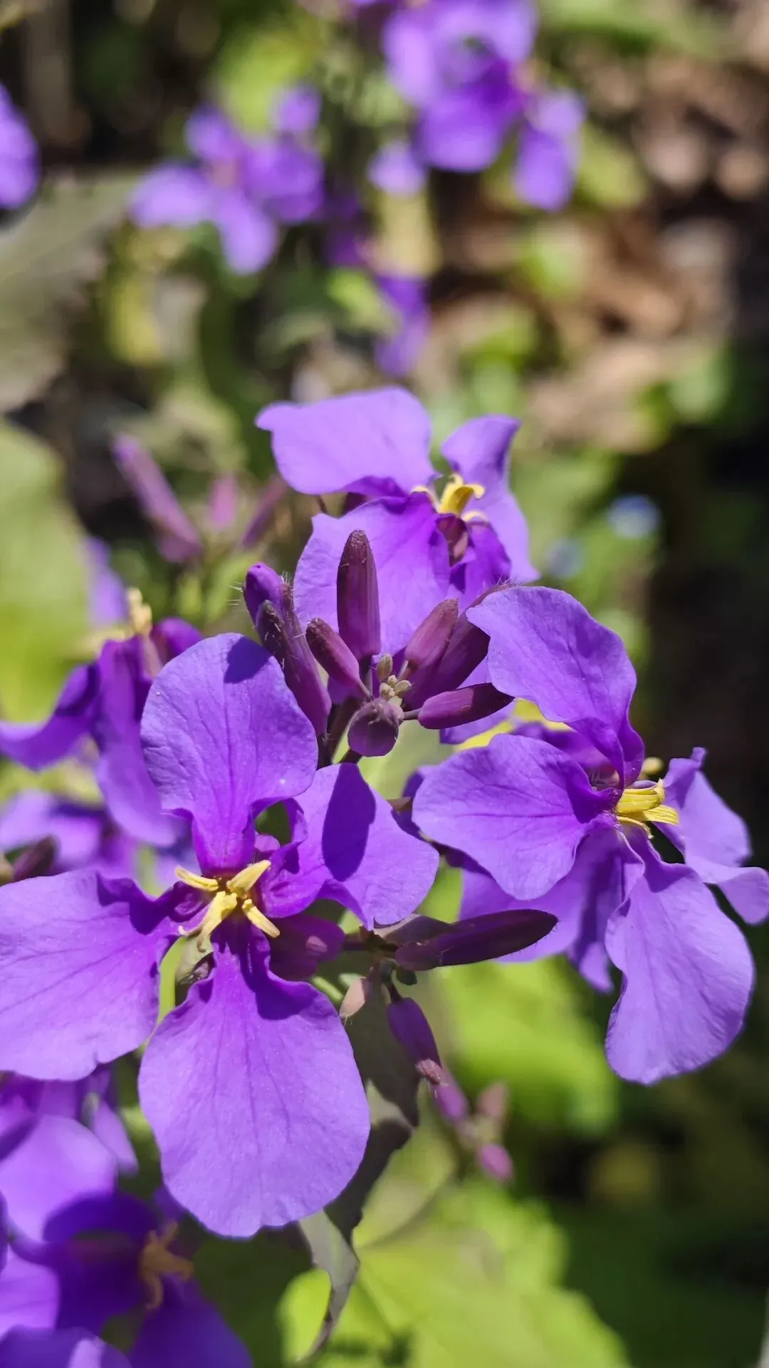 - 总状花序,花瓣4枚十字形,主色淡紫/蓝紫,偶见浅红、白色;花期3–5月,果期5–6月,长角果细长