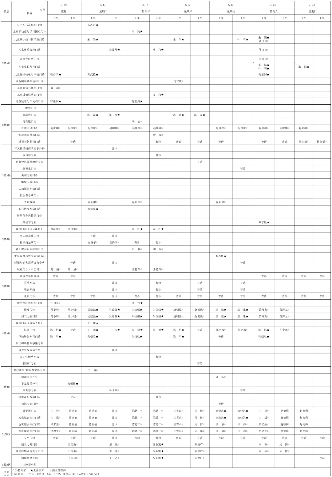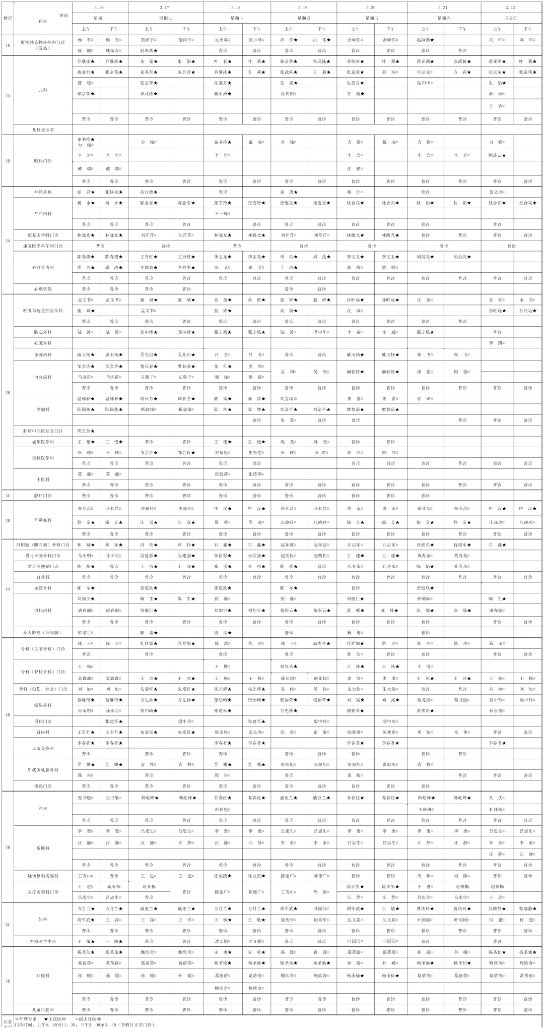 为提高广大市民朋友们的就医体验,宿迁医院门诊部现将(03月16日-03月22日)门诊排班表向您公示。便于您根据自身情况,选择合适的医生、合适的时间就诊。