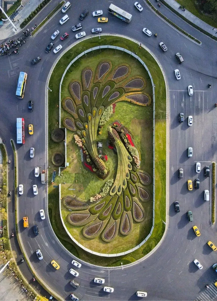 南京鼓楼广场的两只孔雀