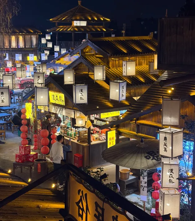 扬州的夜不吵。灯亮起来,沿着古运河走一段,水面黑亮,风带点潮,吹得人更清醒。有人坐着发呆,有人并肩聊天,有人把椅子搬到店门口歇一歇,整座城像在慢慢收工。