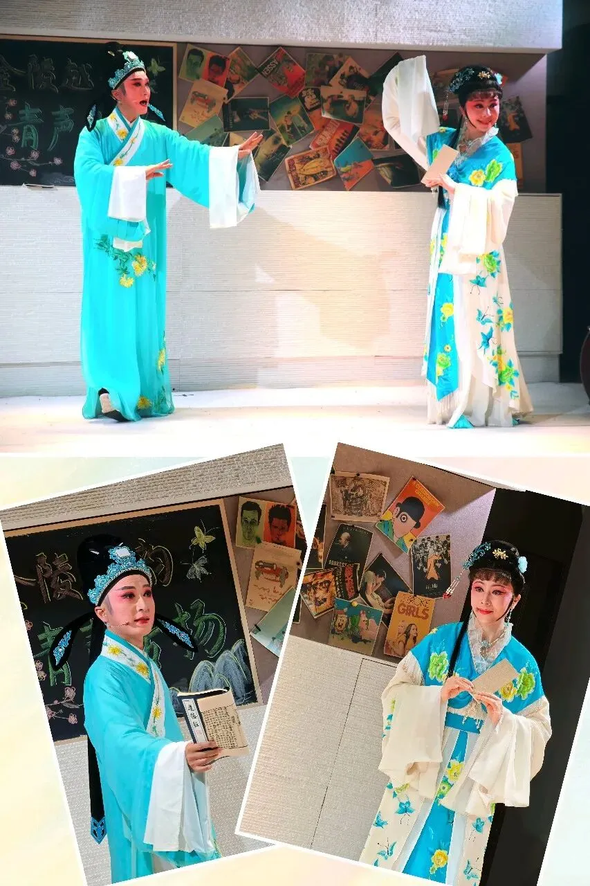 紧接着,周丽、袁红、分别带来了《梁山伯与祝英台》中的经典桥段“十八相送”和“回十八”。袁红饰演的梁山伯质朴真诚,周丽饰演的祝英台灵动俏皮,二人配合默契,将同窗三载的情谊与依依惜别之情刻画得入木三分。随后缪伟表演的“回十八”更是将梁山伯得知英台心意后的欣喜若狂表现得淋漓尽致,引得台下掌声不断。 蔡申燕独自登台,献上《西厢记》选段“琴心”。她以细腻的表演和婉转的唱腔,展现了崔莺莺月下听琴时的复杂心境,将大家闺秀的矜持与对爱情的向往完美融合,令人陶醉。