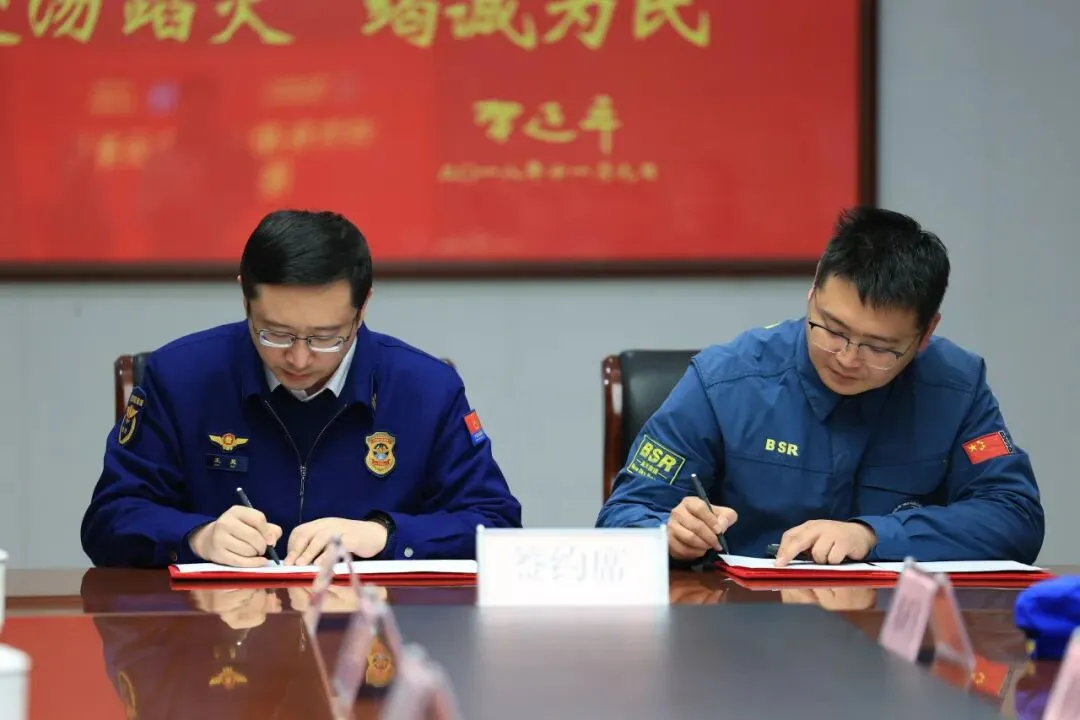 仪式上,浦口区消防救援局与青年蓝天救援队正式签署深度合作协议。双方将立足区域应急救援实际需求,在应急联动、联合处置、技能培训、场地共享、实战演练、安全宣传等方面开展全方位、常态化合作,进一步整合专业救援力量与社会志愿力量,构建更加高效、协同、专业的现代化应急救援体系。