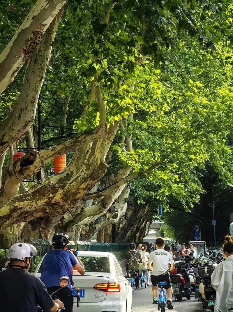 我走过许多城市,东方的,西方的。也见过不少城市的绿,南方的,北方的。与之相比,我更爱南京城的绿。南京的绿,是沉静的绿,是绵厚的绿,是挂满苍穹的绿,它仿佛能拧出六朝烟水来。这漫城的绿意,若匀作十分,倒有五分要记在梧桐的账上。南京的梧桐,不是那种疏疏落落的点缀,而是泼墨般的、汪洋恣肆的倾泻。街巷是它的河道,楼宇是它的堤岸,它便这么浩浩荡荡地流着,流成这座城呼吸的韵律与胸膛起伏的底色。