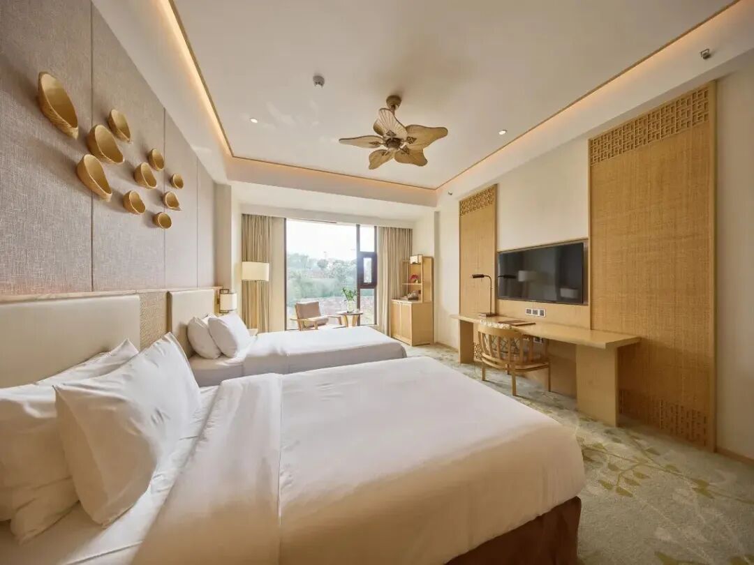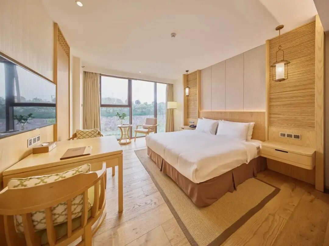 酒店山景高级房将自然美景框进窗内。大量运用的天然材质与温和色调,让每一间房都成为身心灵休憩的容器。每间客房都融入自然元素,面积宽敞明亮,软硬件设施豪华舒适