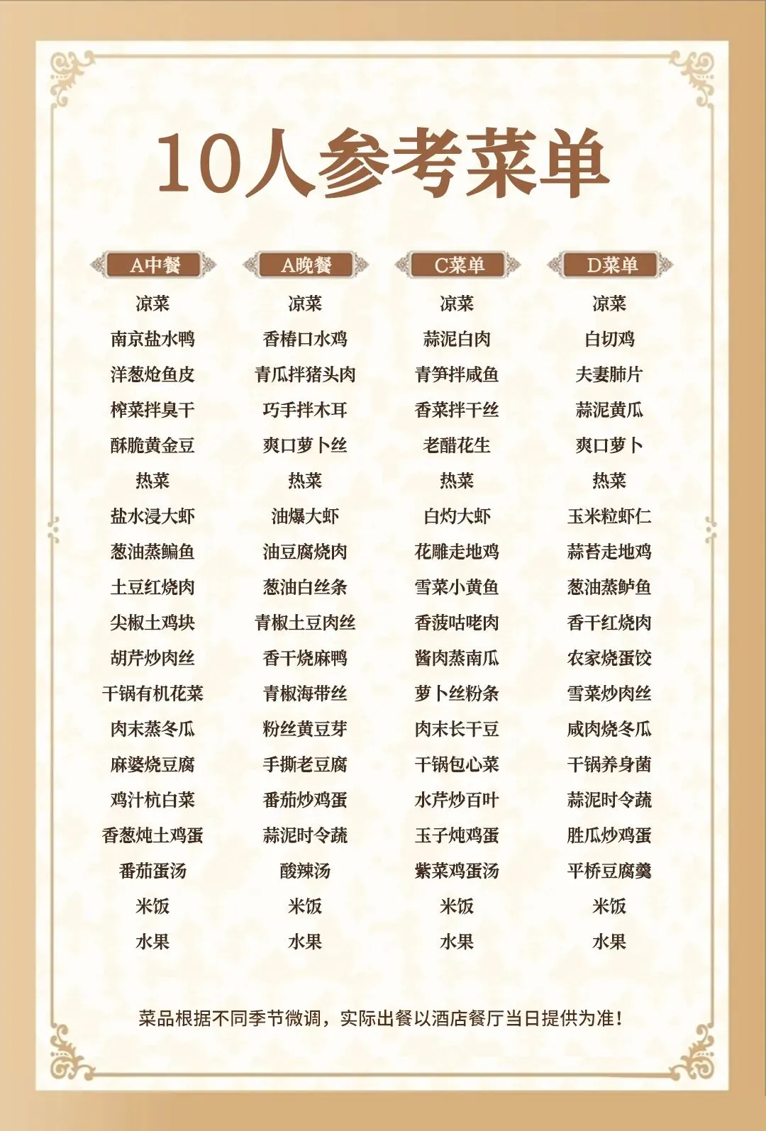 注:以上菜单根据人数增减调整菜单(菜单随机,不指定)