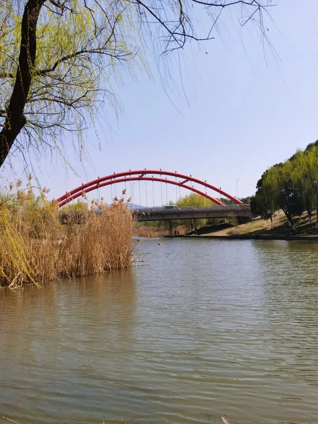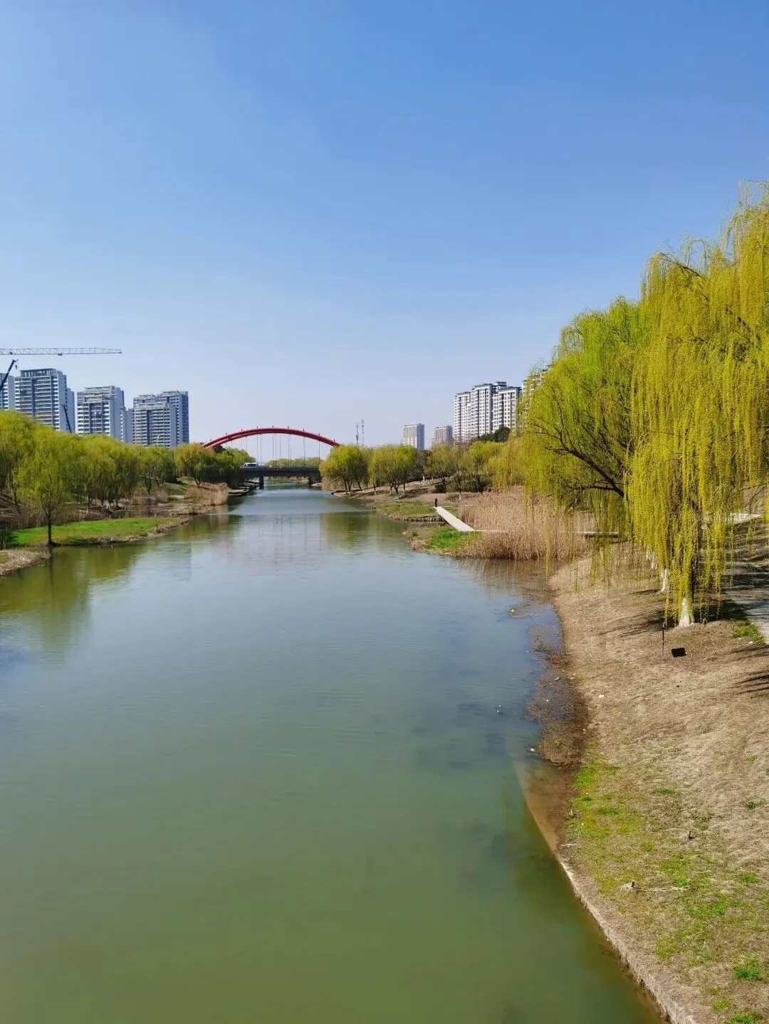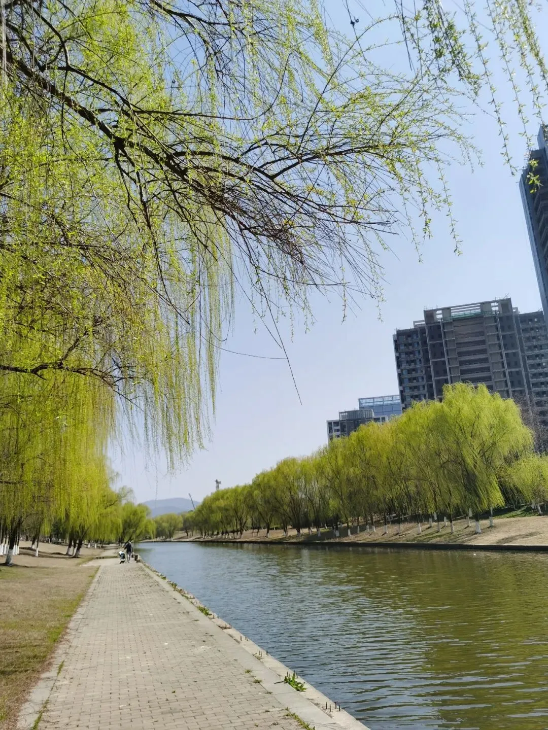 垂柳几乎与河水吻上了。看来,春天的浪漫不只属于花朵。