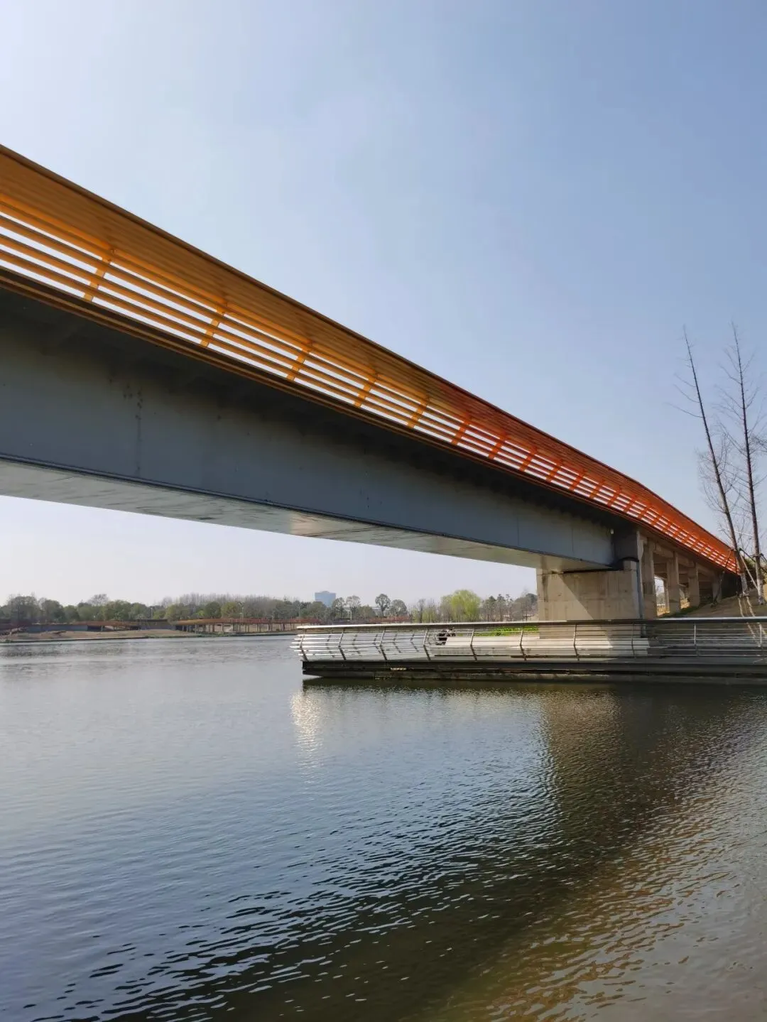 我走到路的尽头,过桥沿对岸折回三桥公园,在彩虹桥的下面走。