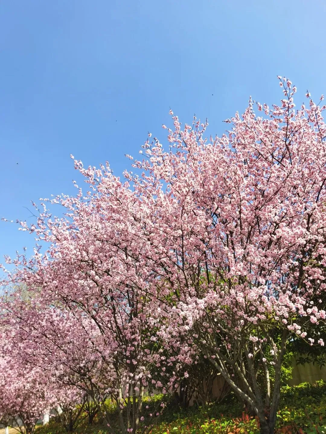这片樱花开得正酣,密密匝匝的花朵压弯了枝头,远看如烟如雾,近观则每一朵都精致得像少女的梦。