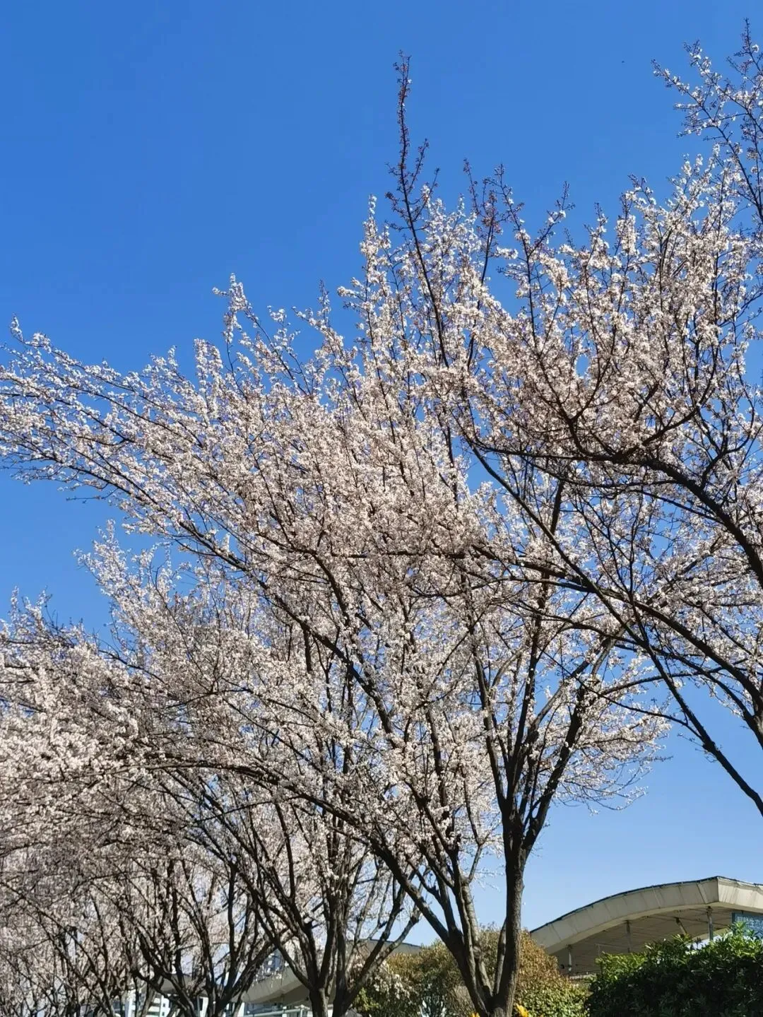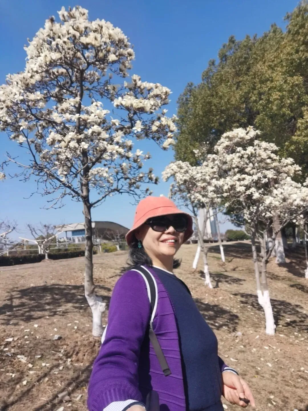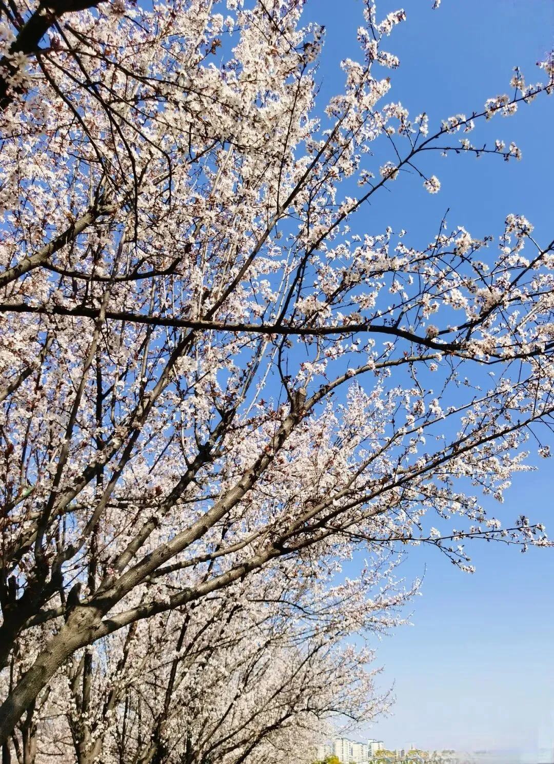 再往前,是一段开阔的河岸。几株高大的玉兰树伫立在那里,与樱花的娇柔截然不同。它们的花是硕大的,端庄的,像一只只白玉雕成的酒杯,直直地朝向湛蓝的天空,盛满了阳光。