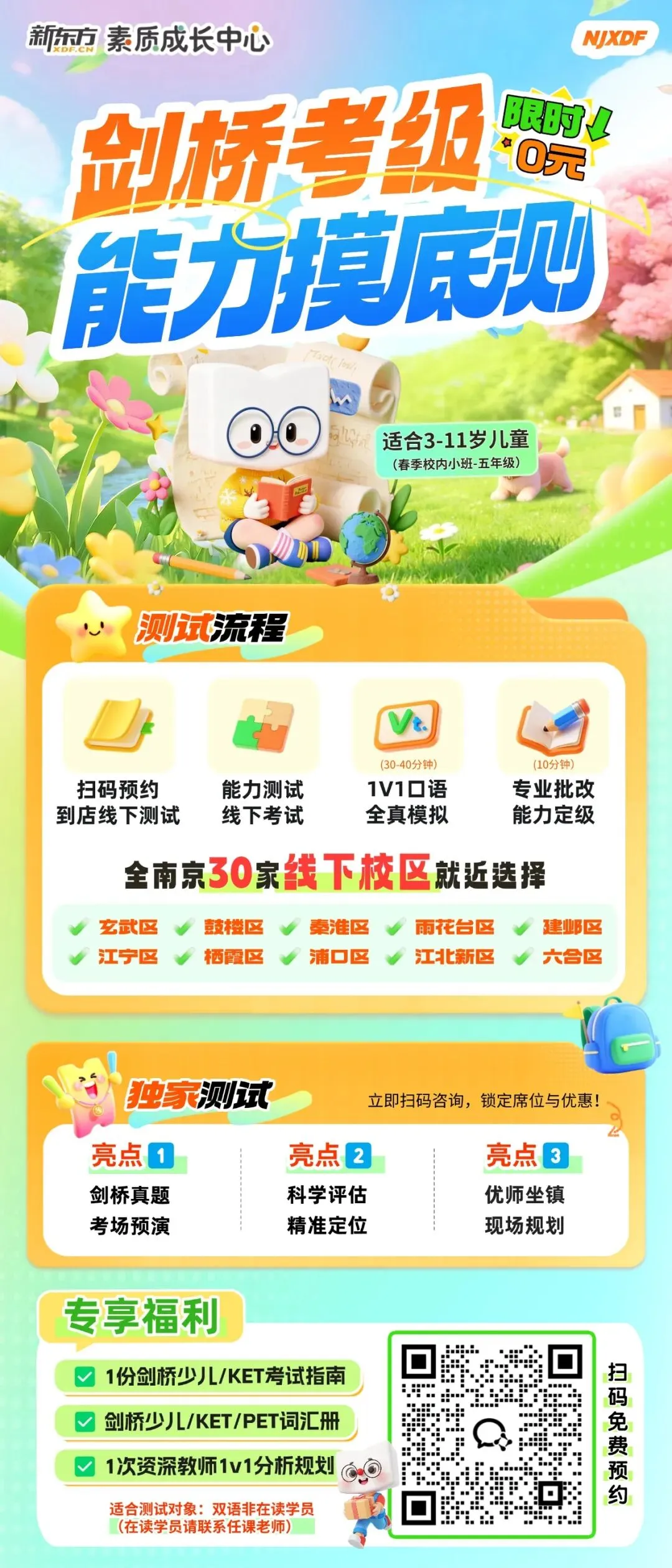 可预约任意校区免费测试名额