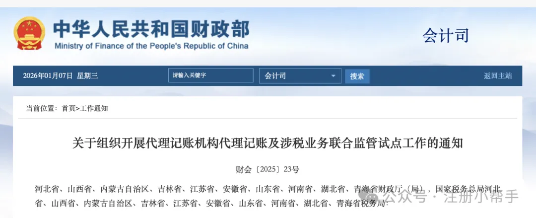 财政部和国家税务总局联手发文,搞起了代理记账及涉税业务联合监管试点。这场自上而下的监管风暴,2026年3月就正式在天津、南京、河北、江苏、甘肃等10个省份铺开,目标超明确——精准打击行业里的那些歪门邪道。