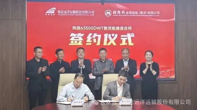 3月12日,南京远洋运输股份有限公司与招商局金陵船舶(南京)有限公司在南京举行两艘63500DWT散货船建造合同签约仪式。