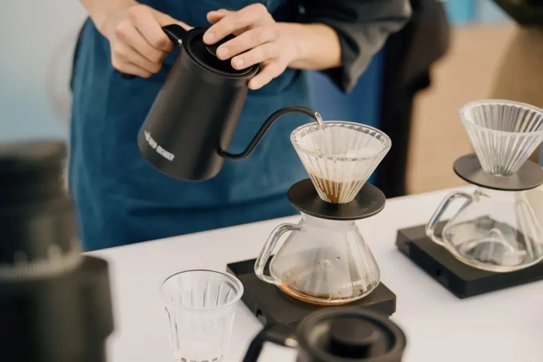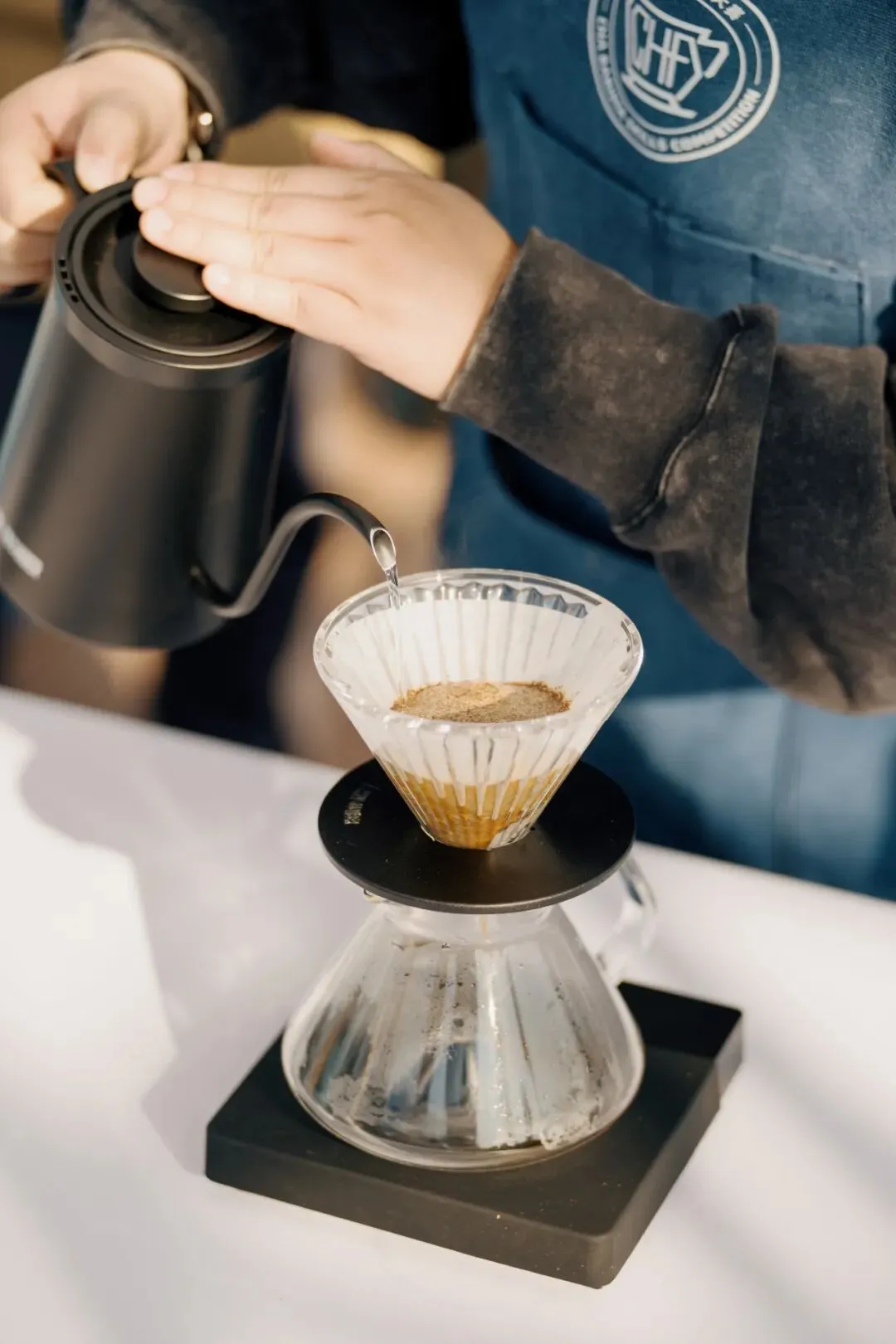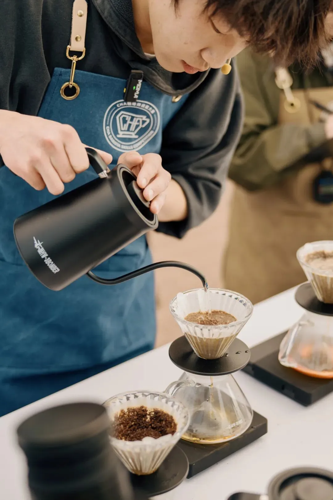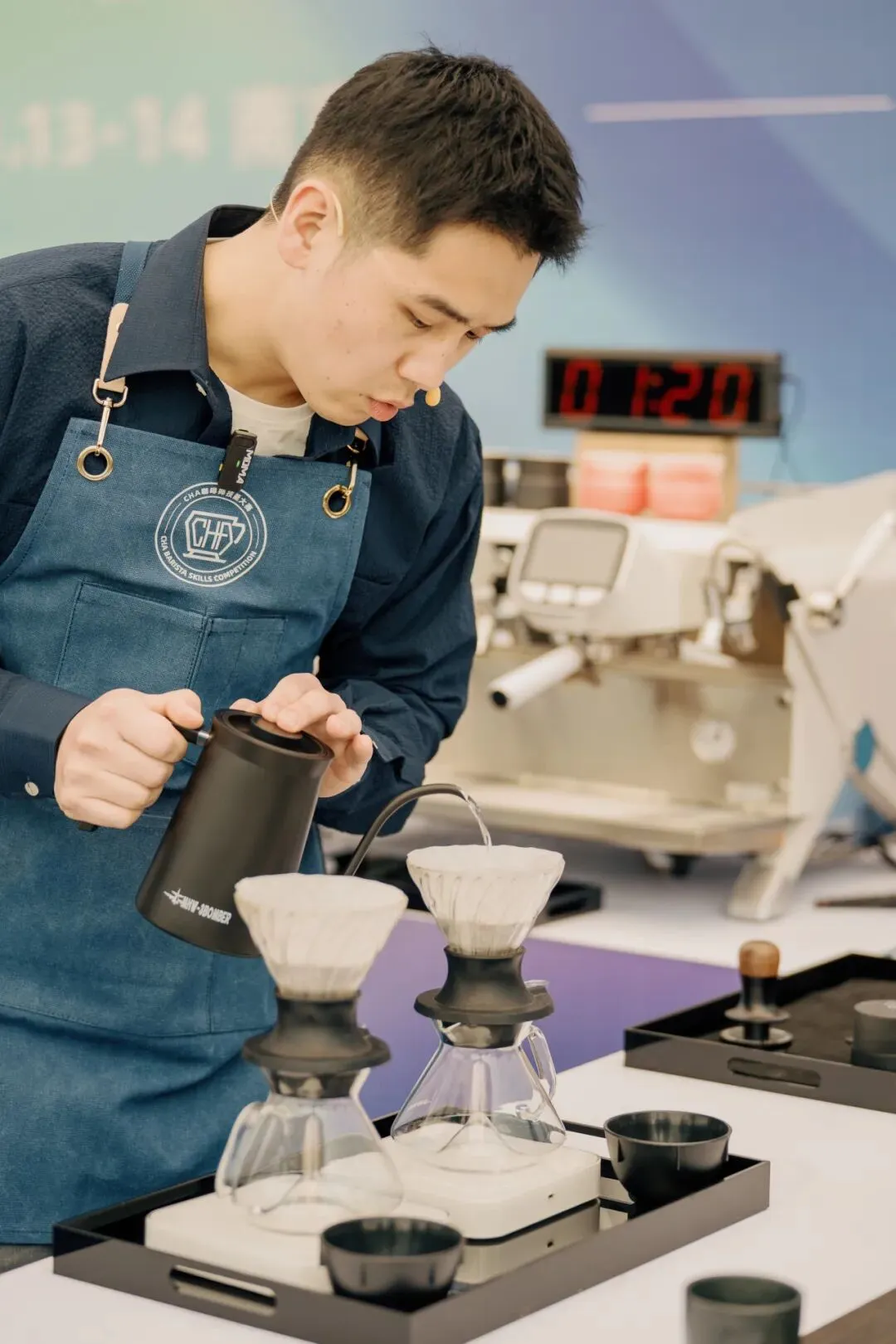 3.手冲咖啡:需要适当的展演来提升服务体验(必须使用大赛指定的手冲豆制作)。每个环节的咖啡选手都需要制作2杯。