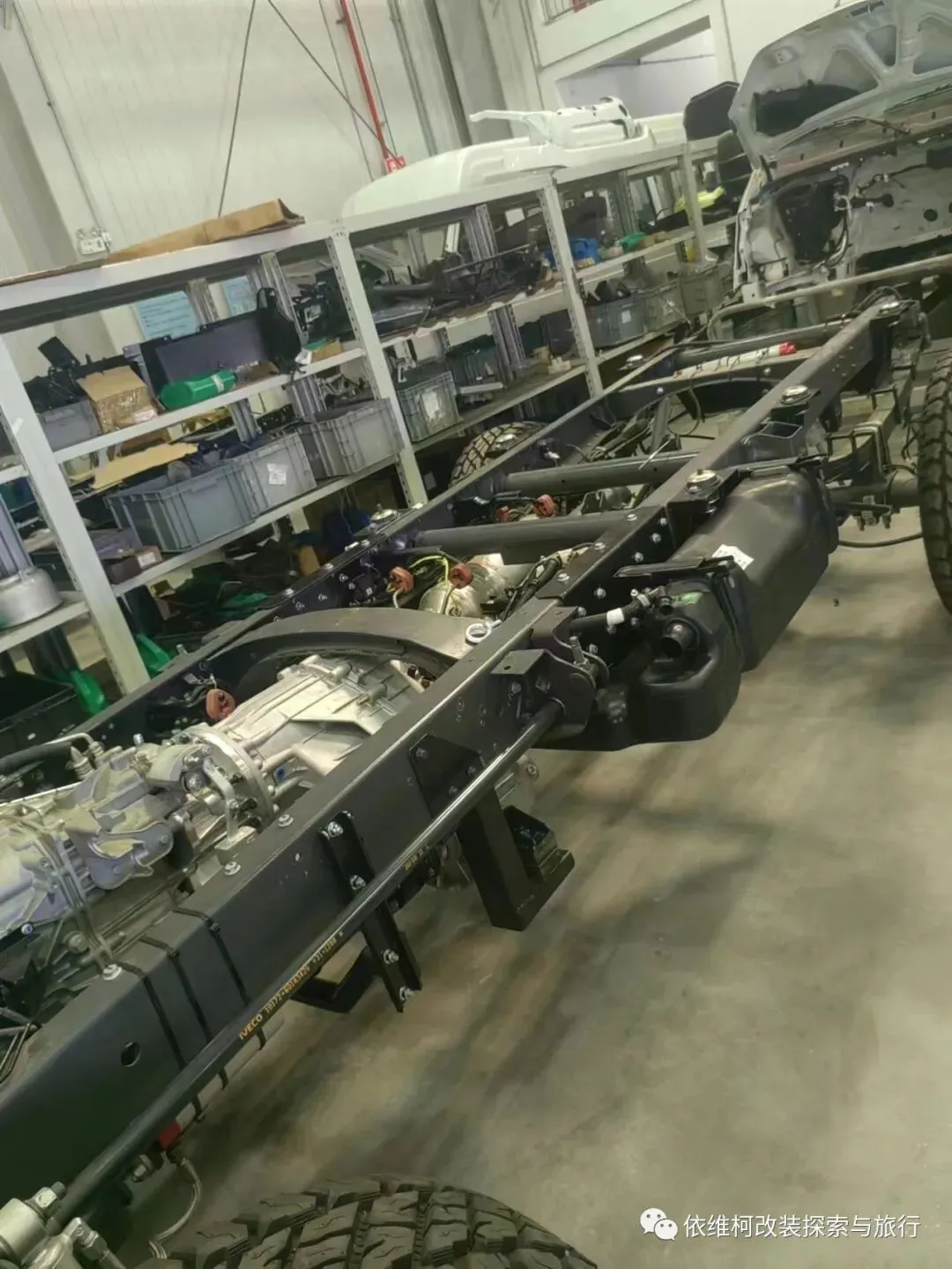 难得珍贵的,还有两张四驱欧胜底盘的图片,通过图片可以看到,欧胜的四驱系统和依维柯2045几乎没差别,前桥也是采用的扭力杆悬挂,不要质疑厂家工程师,这是最可靠,最安全的方式。发动机采用的是3.0 fic柴油发动,变速箱为六速手动,同时应该也有自动挡。