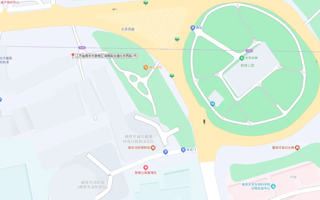 《魏特琳日记》中提过“日本大使馆”,首次写到是在南京沦陷后,1938年的年初。日记中提到的多处地址在“南京安全区”一文中寻访过。日本大使馆在网上查找到资料:“侵华战争前,日本在南京市北平路1号、3号(后改为北京西路1号、3号)共租用土地8500平方米,建日式花园楼房1栋51间,西式平房2栋8间,中式平房1间,白铁皮房2栋11间,共计71间。鼓楼岗西侧山坡上的4层楼房,就是日本大使馆的办公楼,该建筑始建于30年代初期,其风格既无东洋之风,也非中式建筑,而是纯西式风格的单调平面性建筑,而且这组建筑深受巴洛克艺术风格的影响。当年,在民国首都的众多外国驻华使馆中,日本驻华使馆最不可一世。1945年8月15日抗战胜利后,国民政府将日本驻华大使馆作为敌产予以没收,后改作外交部宿舍。解放后,日本驻国民政府大使馆旧址——北京西路1号、3号的建筑也陆续被拆,现仅剩1号的四层建筑楼房,目前归南京市消防大队使用。”“北京西路1号、3号,南京消防大队”。想来,这也是将“寻访安全区”的展览设在鼓楼公园内的原因之一。此为工作场所,保安拦在门口“闲人莫入”,问及“有无国保碑”或是“日本驻民国大使馆”之类的民国建筑或是小楼等,说没有,肯定没有。网上说在里面,到了门口进不去,委实着急,希望能通融一下,保安说:“想进去可以,先预约”。好,立刻查找小程序,“南京消防博物馆”,预约了当天下午两点半,入馆参观。时中午十二点,距开馆还有两个半小时,先离开寻访另一处国保碑——八路军驻京办事处。从鼓楼广场穿高楼门到傅厚岗,这片区域有了大变样,正在打造成“历史文化街区”,期待。转悠了两个多小时,看时间差不多到了,再次回到消防大队,给保安查验了预约信息,终于进了门,先参观消防博物馆。博物馆位于消防大楼的一二层,一层说历史,清末至民国。二层介绍新中国后消防的发展过程。馆内内容很多,剪辑了一段视频,感兴趣的可前往参观,注意一下时间:周一至周四休息,以及中午11:30到下午2:30休息。消防博物馆中的内容不在本篇展开,单说一个启发,为何从明朝的鼓楼、到今天消防大队的地点会选在此处,皆因鼓楼岗地理位置的特殊性。鼓楼岗原为黄泥岗,从明朝的城垣来看,位于城市中心,因四周皆平地,海拔40米的“高岗”成为中轴线中心处难得的高地。明朝在此按照“左列鼓架,右建钟楼”的布局修建鼓楼,成为旧时南京城的报时中心,也用于催促政务、迎接王侯、接诏选妃等重大庆典之所在。到了清末,钟鼓渐渐退出使命,高地仍在,伴随城市发展火灾频发,电讯不通达的年代,这一处高地遂成为消防的最初建设地之一。参观完博物馆,在消防大院里围着大厦转了一圈。院子不大,只一幢办公大楼,一排停放消防车的车库,一栋类似宿舍楼的现代楼房,之后便是一转边围墙,没有见到有其他小楼,更不要说“特别的民国建筑”之类。在院里看到一消防兵,问有无“民国建筑”一事,他想了想,说,“我们院里没有,你说的可能是在武警院里。”继续在消防大队里逗留显然无果,出了门,向一墙之隔的北边寻找。正对鼓楼公园的西侧是一家锦上餐厅,入内寻找,餐厅只是临街建筑的一块区域,有围墙相阻,进不了其他地方(武警大院)。地图上没有标识,这是一片军事管理区,隔着铁栅栏果然看到了一幢小楼,且远远地看到外墙底部有铭牌,凭这段时间对“民国建筑铭牌”的辨识,确定这便是要找的“日本驻中国大使馆”保留下来的那幢小楼。“军事管理区”,“闲人不能靠近”,门口站岗的非一般的保安,而是卫兵,不能靠近,也不能随意拍照。寻访的任务到此结束,虽然没有拍到国保碑,但看到了建筑,就在那。或许以后随着城市的进一步规划,这些历史上重要的遗迹、遗址逐渐向公众开放,通过寻访实地,了解历史。个人觉得还蛮有意义的,之前读魏特琳日记时,读到“收到零星的无线电广播.....”,当时没有画面感,没有具像的概念。日记中提到多次的平仓巷3号也去寻访过,金陵大学的校长陈裕光旧居便在那里。说起来,周六四个多小时的寻访,真正找“日本驻民国大使馆旧址”不过十分钟,且最终没能拍到国保碑。