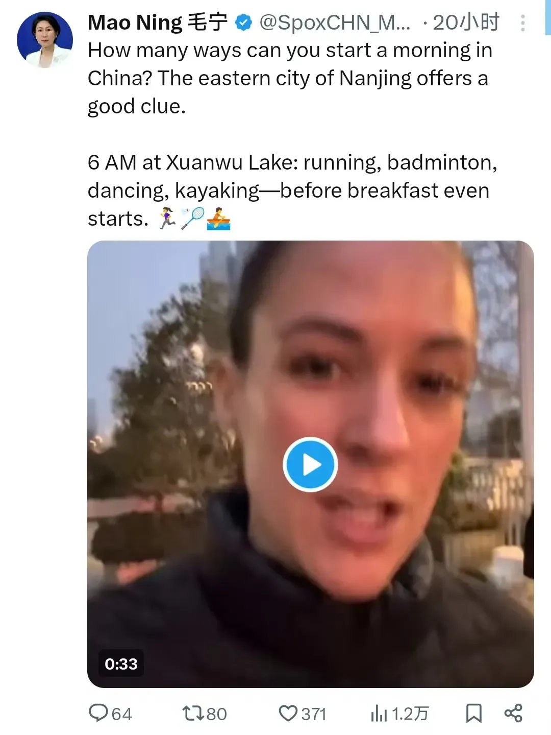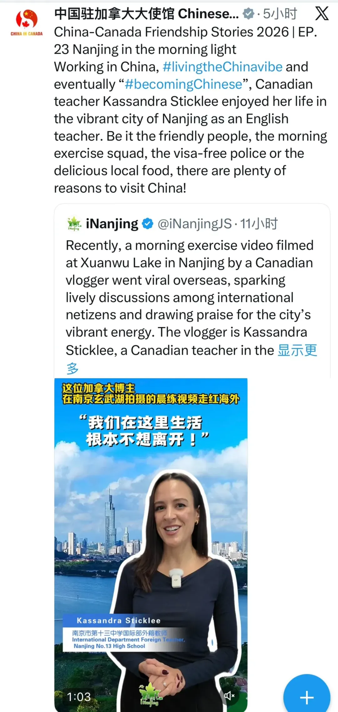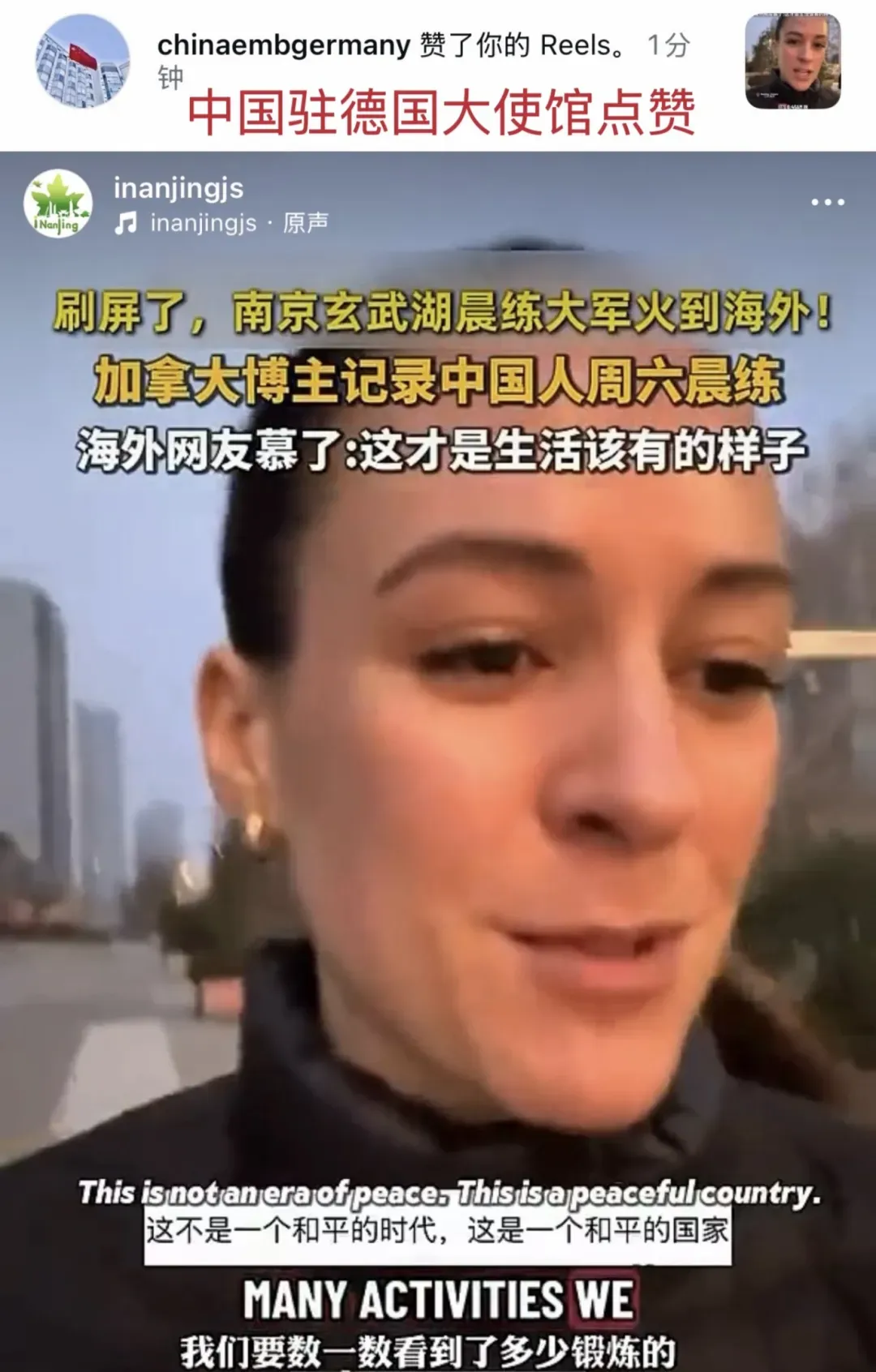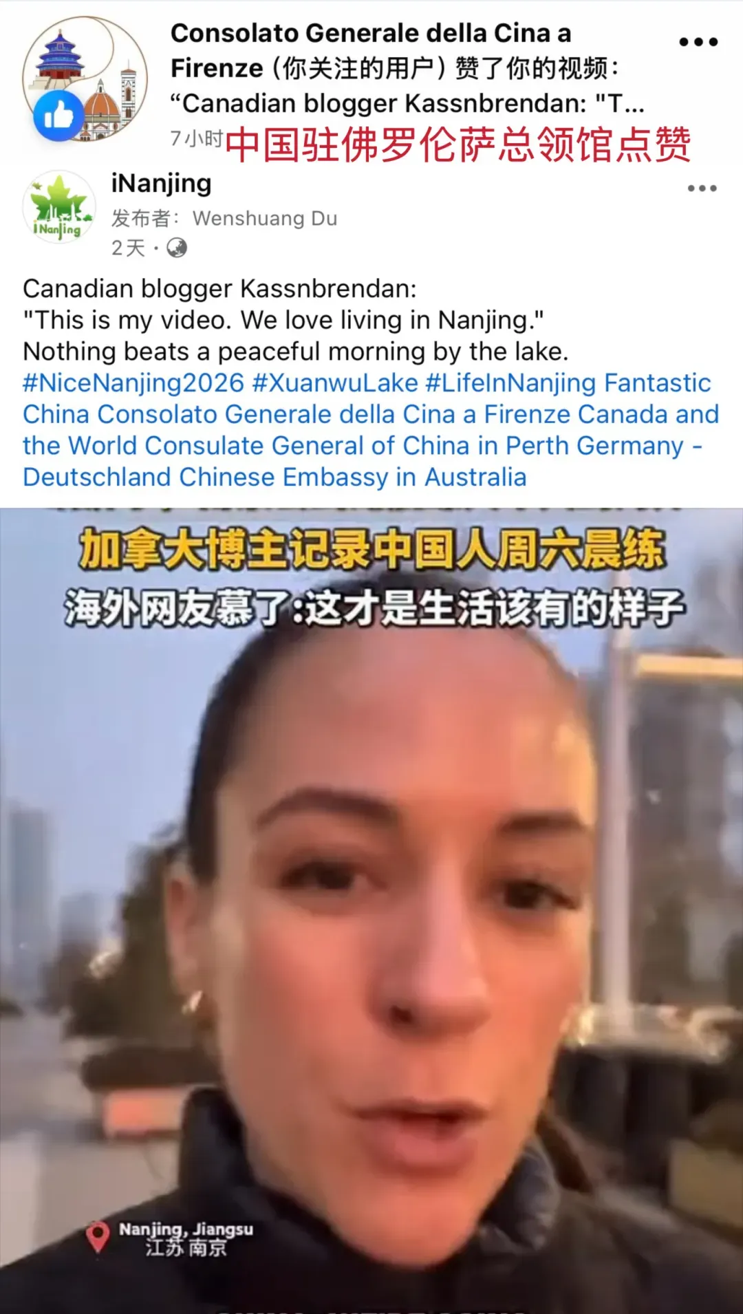 【相关阅读:《玄武湖晨练视频火到海外,南京生活让加拿大博主直呼“perfect”》】