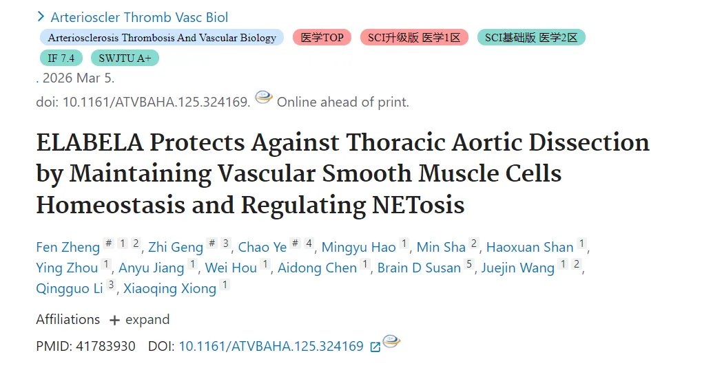 本研究首次揭示了ELA在胸主动脉夹层(TAD)中的保护作用。在两种经典的TAD小鼠模型中,持续输注ELA肽均可显著降低小鼠的死亡率【图1D】。