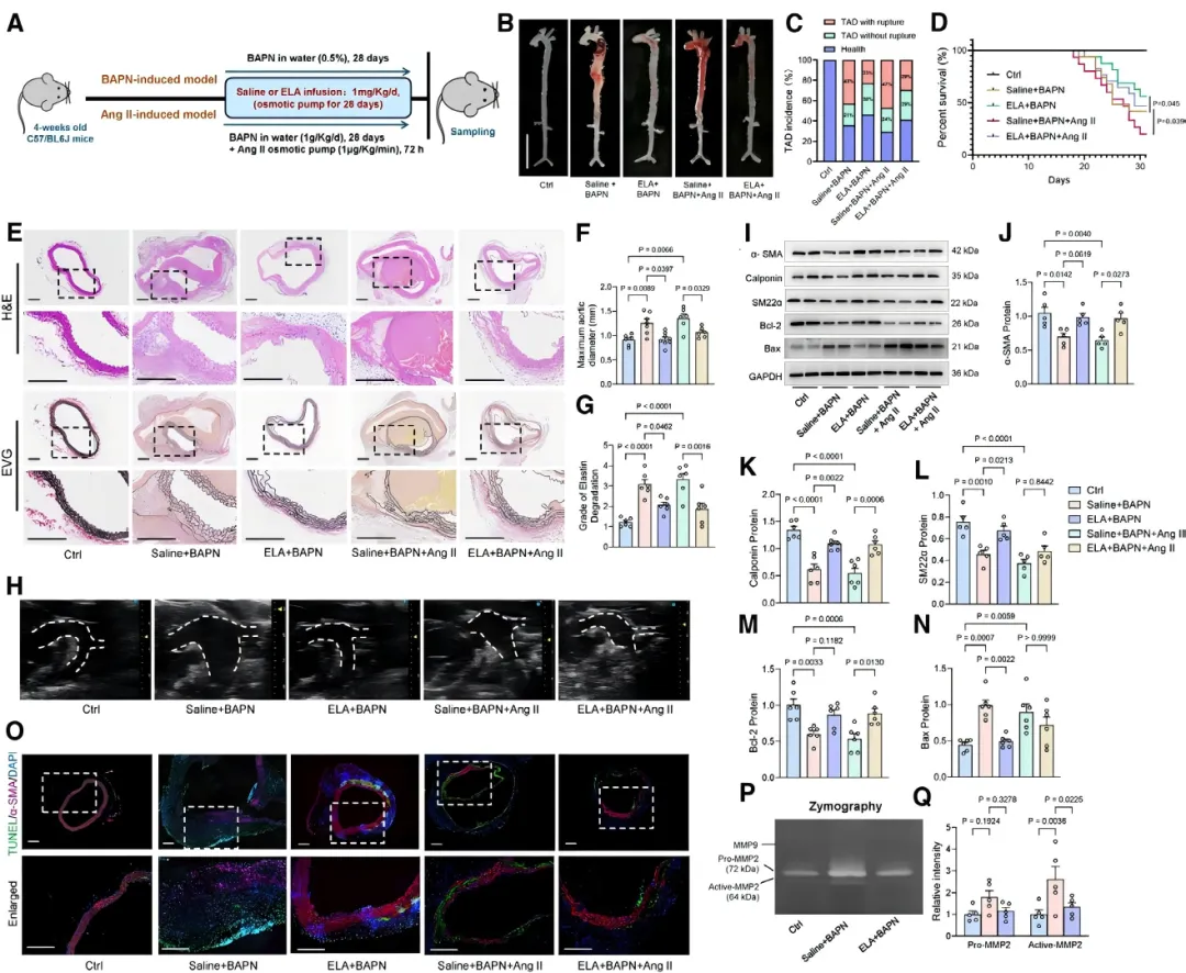 此外,ELA还抑制了基质金属蛋白酶活性【图1P, 1Q】,防止细胞外基质降解,从而保护主动脉壁结构完整。