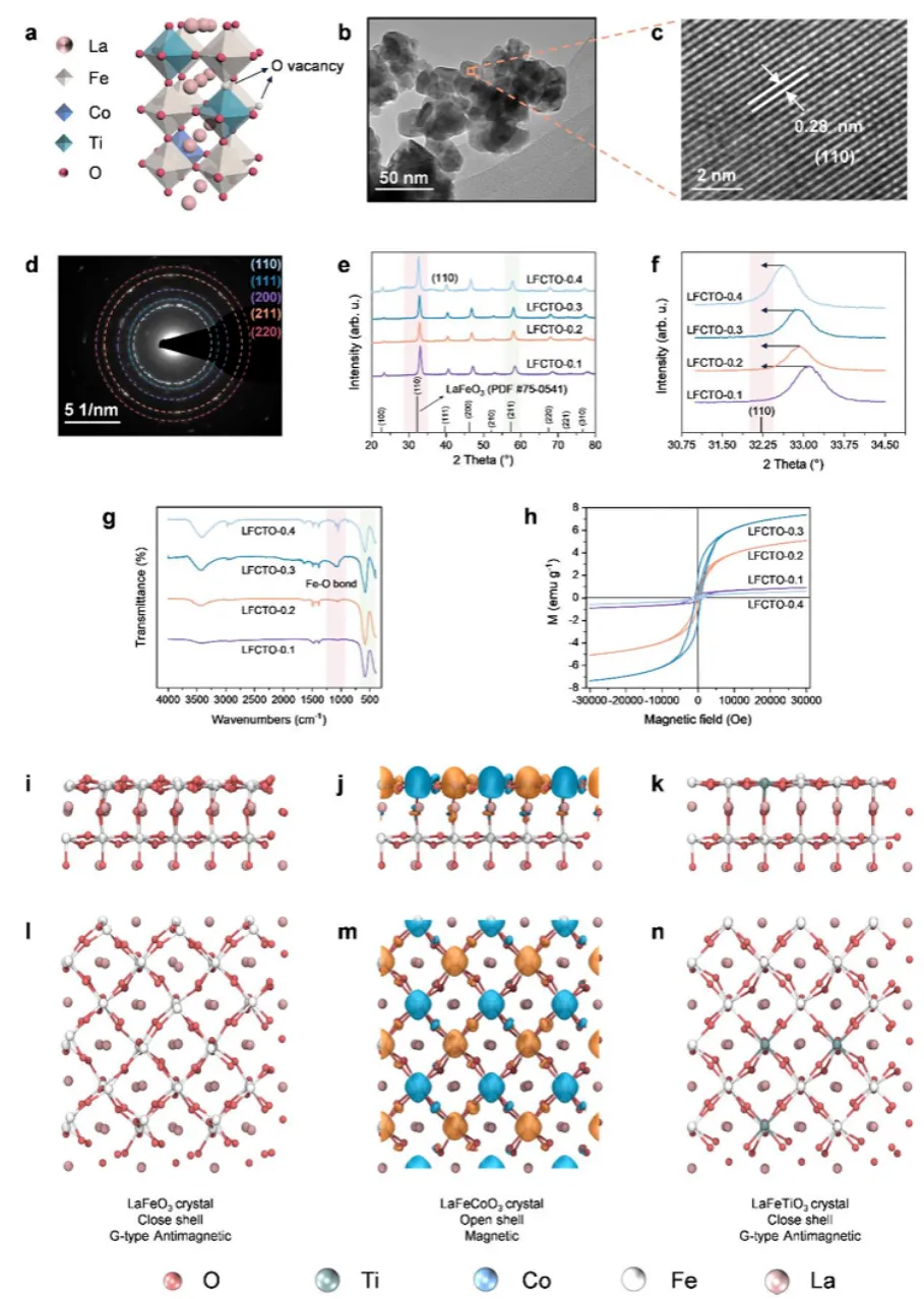 1,性能突破:通过在LaFeO₃的B位共掺杂Ti和Co,构建出 LFCTO 系列吸附剂,其最大吸附容量高达381 mg/g,远超传统吸附剂,且吸附速率快,2小时内即可实现高效去除,解决了传统吸附剂容量低、速率慢的弊端。