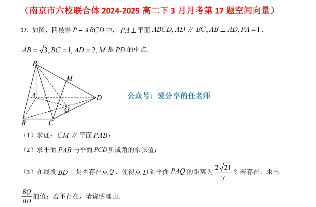 >南京市六校联合体2024-2025高二下3月月考选讲