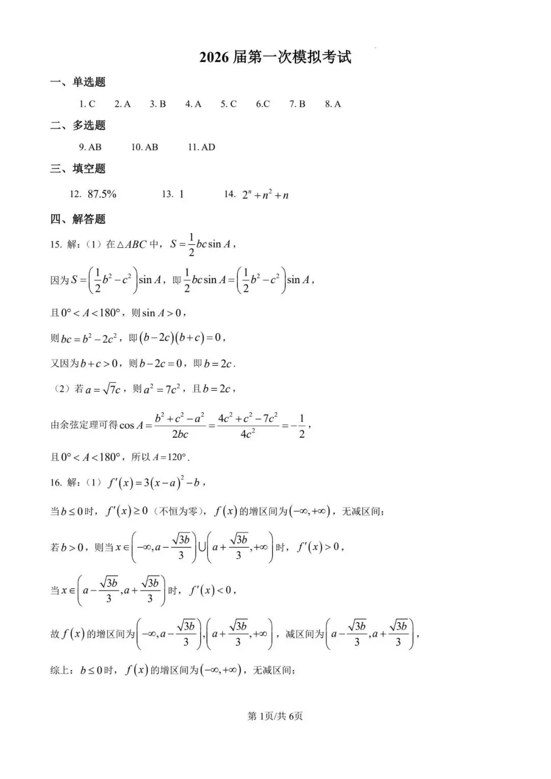>【江苏南京栖霞名校联盟】2026届高三数学一模试卷+答案