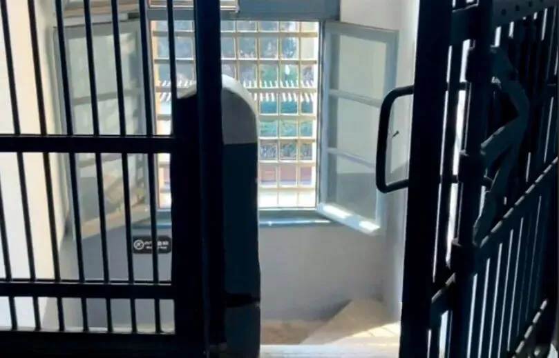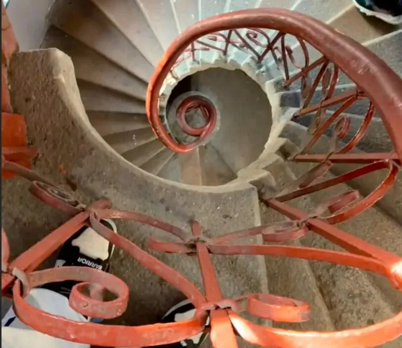 踩着木质楼梯,踏上47级螺旋楼梯,橘红色栏杆泛着岁月的光泽,旋转而上的设计既带着古堡的精致,又暗藏着监控的威慑——站在楼梯转角,三层监房的动静可尽收眼底。