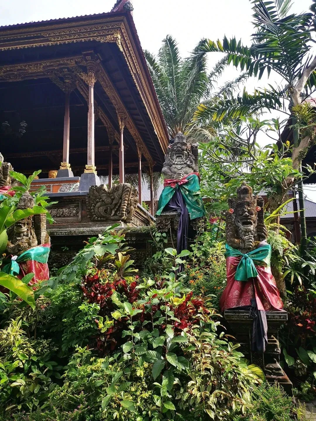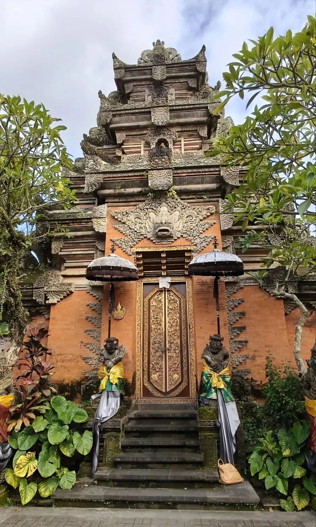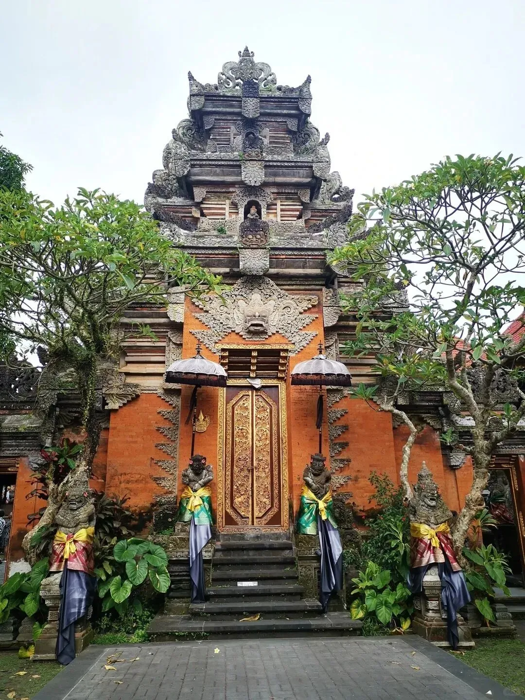 【乌布皇宫】【乌布市场】(约 45 分钟)这座宫殿是乌布王朝请了当时著名的艺术家设计而成的,光是殿内精致细腻的手工雕刻就值得仔细欣赏一番。随处可见的金箔装饰贵气逼人,让整个气氛更显辉煌。 如此精致的皇室建筑,吸引了许多艺术爱好者慕名前来参观。当时政府规定所有建筑的高度不得高于椰子树,皇宫也不例外,因此这座建筑并不高。远远看去,宫殿 的大门像一座塔形的牌坊,虽称不上华丽,但足以让人过目不忘。我们自由穿梭在充满当地特色的乌布市场里,吃小吃,品特色。