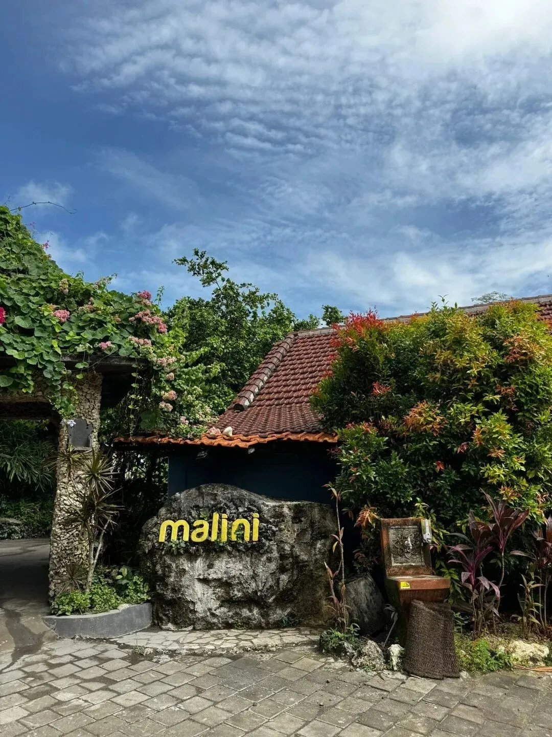 【乌鲁瓦图 Malini网红海景餐厅】一定要打卡这家!风景是不同时间段有不同的美!!她家的风景真的吹爆朋友圈!餐厅就在乌鲁瓦图悬崖边上,往下看就是无敌的海景,就餐可以选择露天或室内的座位,随随便便拍点背影就美的不行(建议穿长裙会更出片)。【菜品】这家的食物就是很特色的印尼餐,配的酱料超好吃!很下饭~
