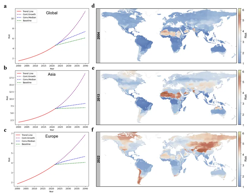 图4. 全球无乳链球菌耐药风险时空趋势预测图