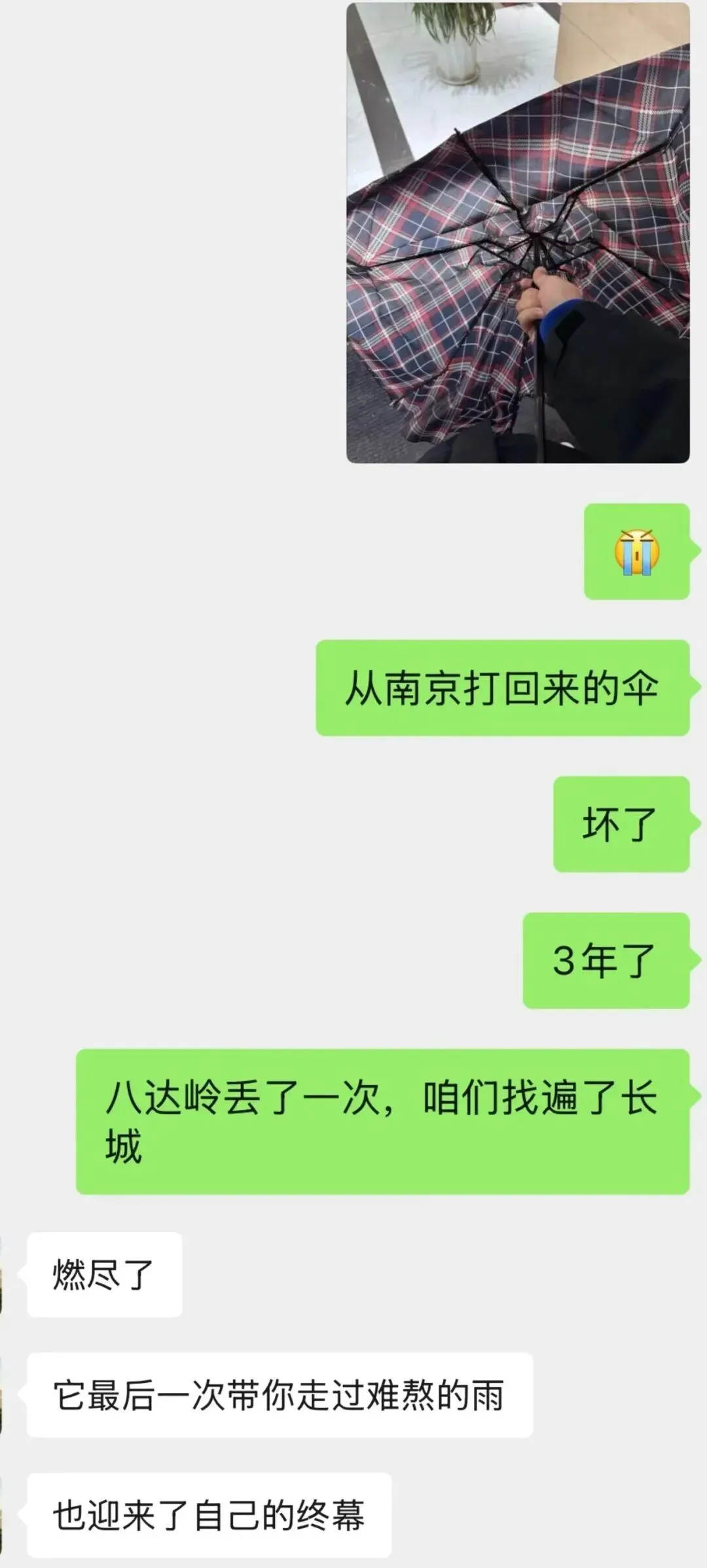 安于现状,应该不是一件坏事。不去幻想闯荡,也不等于温水煮青蛙熬死青春。但是这段时间,我经常梦到过去,曾经对我付出过真心的人,我伤害过的人,辜负过我的人,我突然很想再见到他们,再看一看他们此刻的样子。既然时间会冲淡一切,如果真的有擦肩而过的片刻,心里是否依旧触动,成了未知。我又一次怀念南京的日子,这一次比过去两年都更为强烈。2026年3月14日,早晨微雨,我撑伞而行。不过十分钟路程,那把伞居然坏了。龙骨尽断,零件遗失。晚间归去,我强撑着破伞,一路颠簸。自2023年夏天在南京买来,一路随身。这是一把很小的伞,小到可以装进我的随身腰包,时刻贴行。晴时遮日,阴时避雨。自23年起,一路辗转苏皖,途径徐淮、青海、甘肃、山东,去岁又至北京、广州。在北京与舍友爬长城,途中丢过一次。我们找遍了八达岭,最后在下山时成功找回。