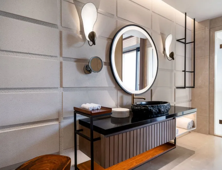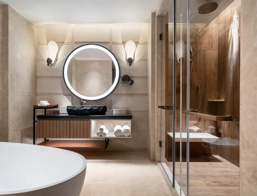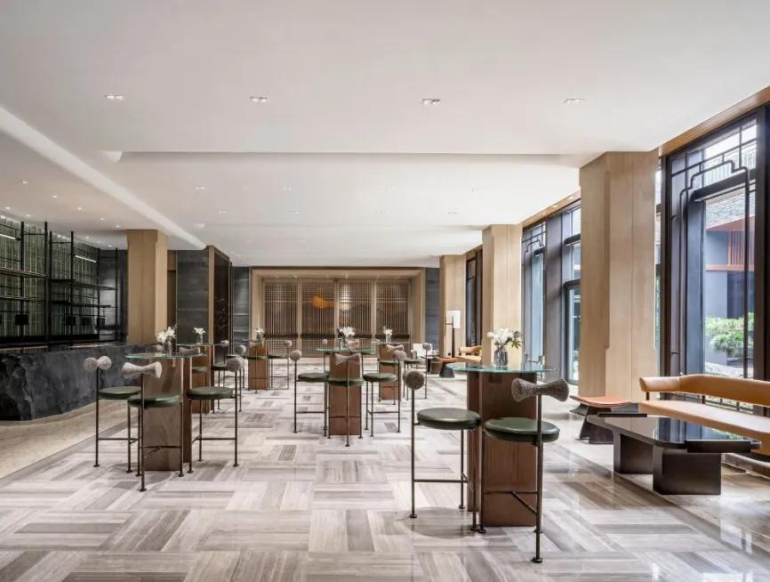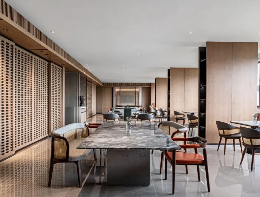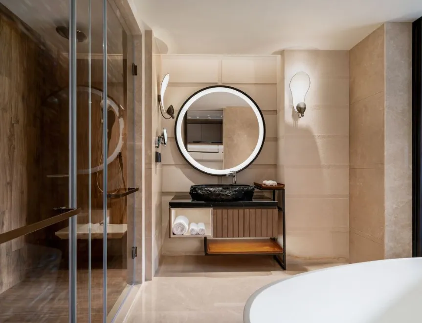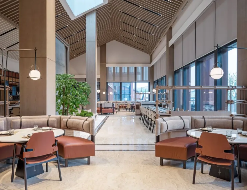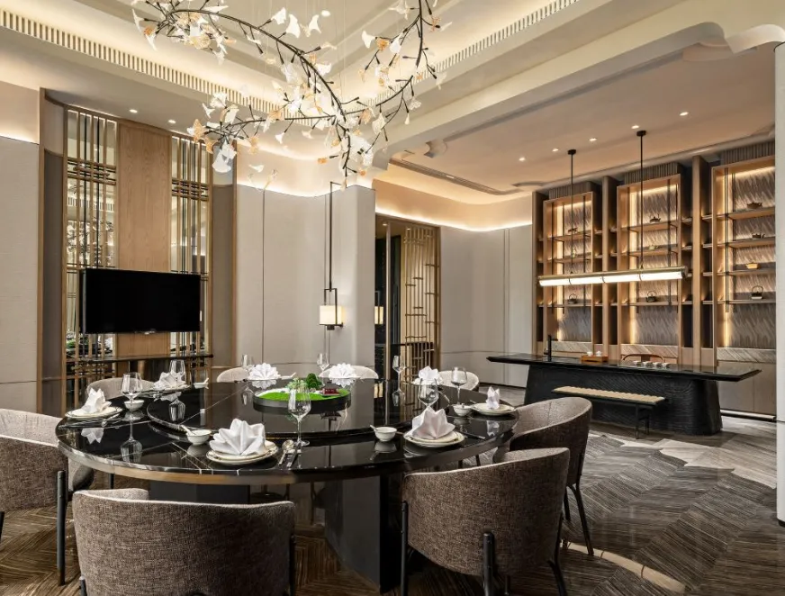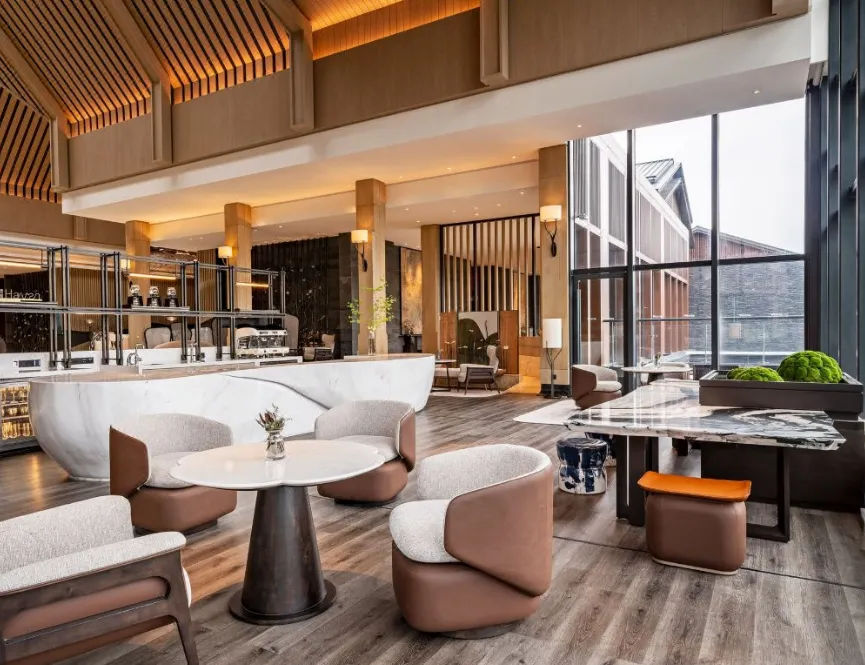 南京威斯汀温泉度假酒店位于江苏园艺博览会的江苏省园艺博览园内,酒店汲取江南建筑的粉墙黛瓦元素,形成了传承金陵底蕴的新中式建筑风格,与周边的自然环境巧妙呼应。客房采用天然材料和唤起自然意象的元素,营造无与伦比的感官体验,提升了整个酒店源于自然的美感。
