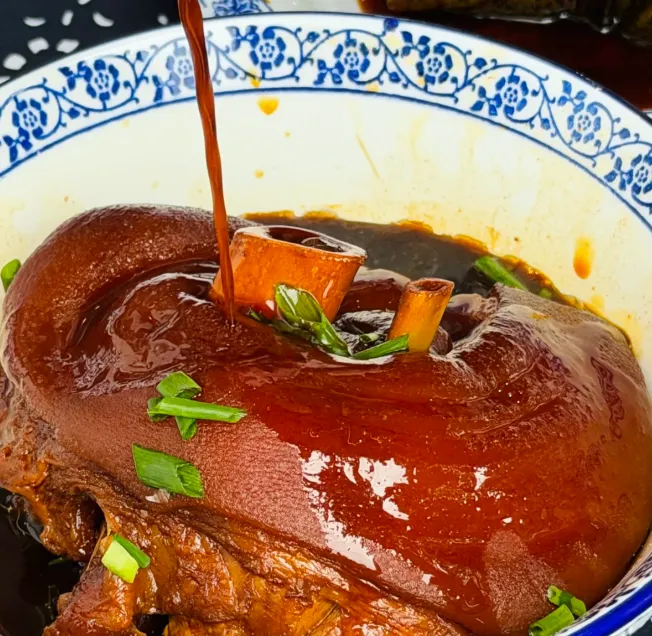 万三蹄做法简述:先把蹄髈焯水去腥,锅里放酱油、冰糖、黄酒和少量香料,小火慢慢煨到入味。火候别急,时间一久,胶质化开,入口才会软糯。