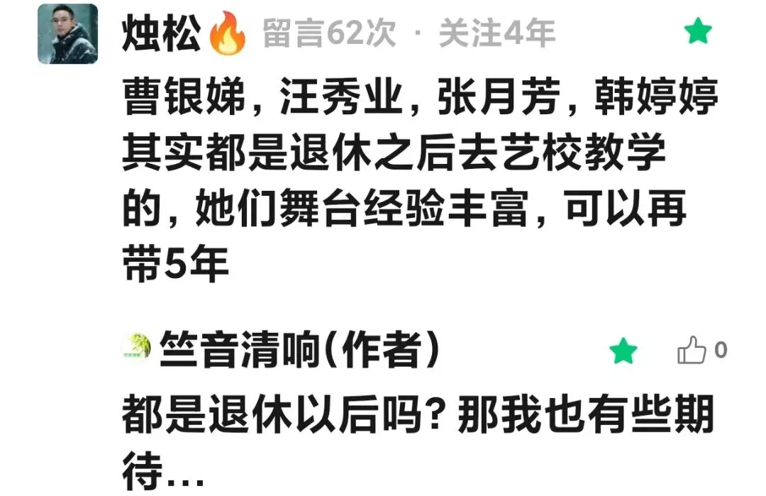 这都是我不了解的情况。当然,我是知道有返聘的情况,但还以为不太多,但是很多朋友都反馈有这种情况,像锡剧她们也是这样。如果是这样的话,选择余地就比较大了,至少这一次竺派的老师希望不会再缺席了吧……