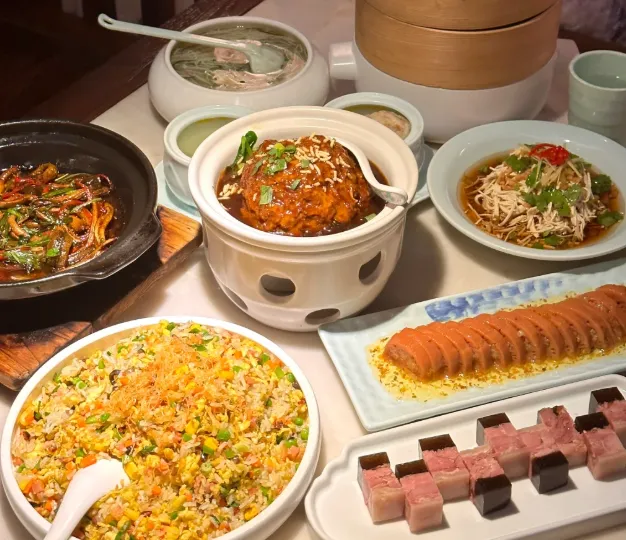 中午适合吃点正经淮扬。狮子头肥而不腻,筷子一夹,肉先松后弹。大煮干丝看着清淡,入口却有豆香和高汤的厚,咽下去,胃里就稳了。晚上可以简单点,扬州炒饭别小看,米粒是分开的,不是干硬,而是油香贴着米香走,越嚼越有劲。