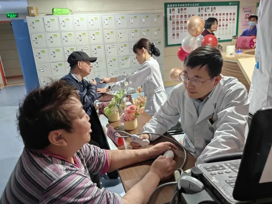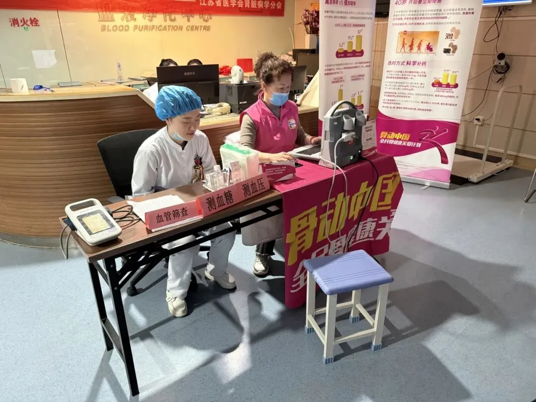 交流会前后,科室医护团队为到场的肾友开展血糖、血压、骨密度等检测,科室副主任潘斌斌主任还争分夺秒地为30余位肾友进行了血管通路公益筛查,用“零距离”的服务为患者的“生命线”保驾护航。