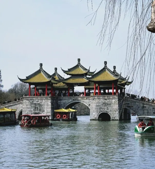 刚到这儿,建议你从瘦西湖逛起。别以为“湖景区”就是长枪短炮的标配,这里的春柳翠、虹桥卧波,不是被修饰出来的景致。湖面很长,一匹慢船划出来,一根桨,一缕歌,有人在边上打太极,也有人泡在茶室发呆。五亭桥的影子,在水里一晃,像是时间特地停下脚步,想让人多看几眼。