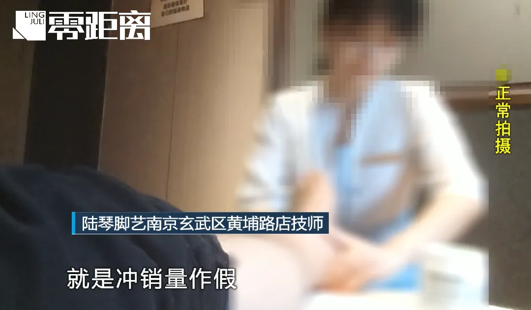 为核实情况,零距离记者以普通消费者身份,首先来到位于玄武区的陆琴脚艺黄埔路店进行暗访,该门店在一些网络平台上的评分和销量都相当高,在同类店铺中排名靠前。