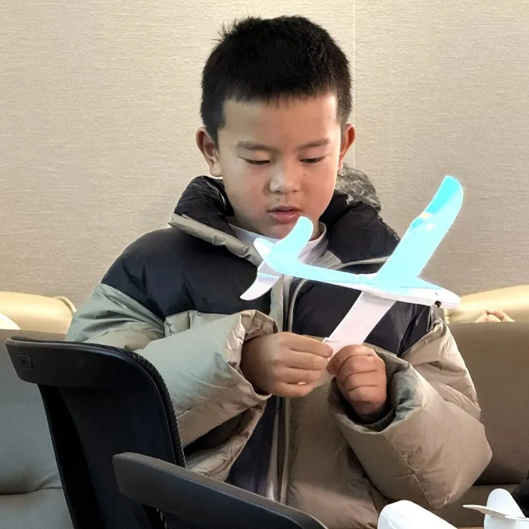 经过十几分钟的精心制作,每一个航模都承载着孩子们的飞行梦想。看着亲手完成的作品,大家成就感满满,迫不及待想要带着它体验飞行的快乐。