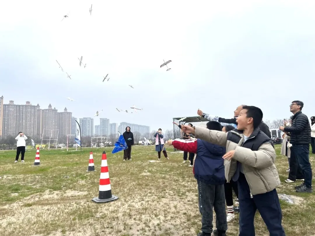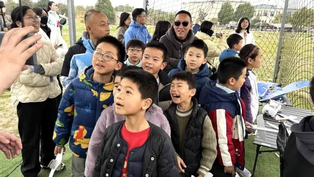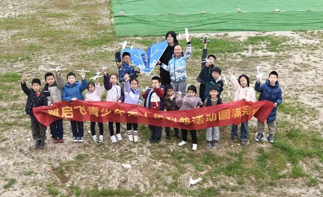 最后,大家高举纸飞机、面带笑容,用航拍机镜头定格这份难忘的科技之旅,留住这份属于童年的探索与热爱。