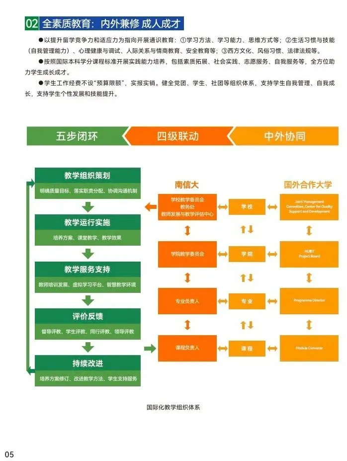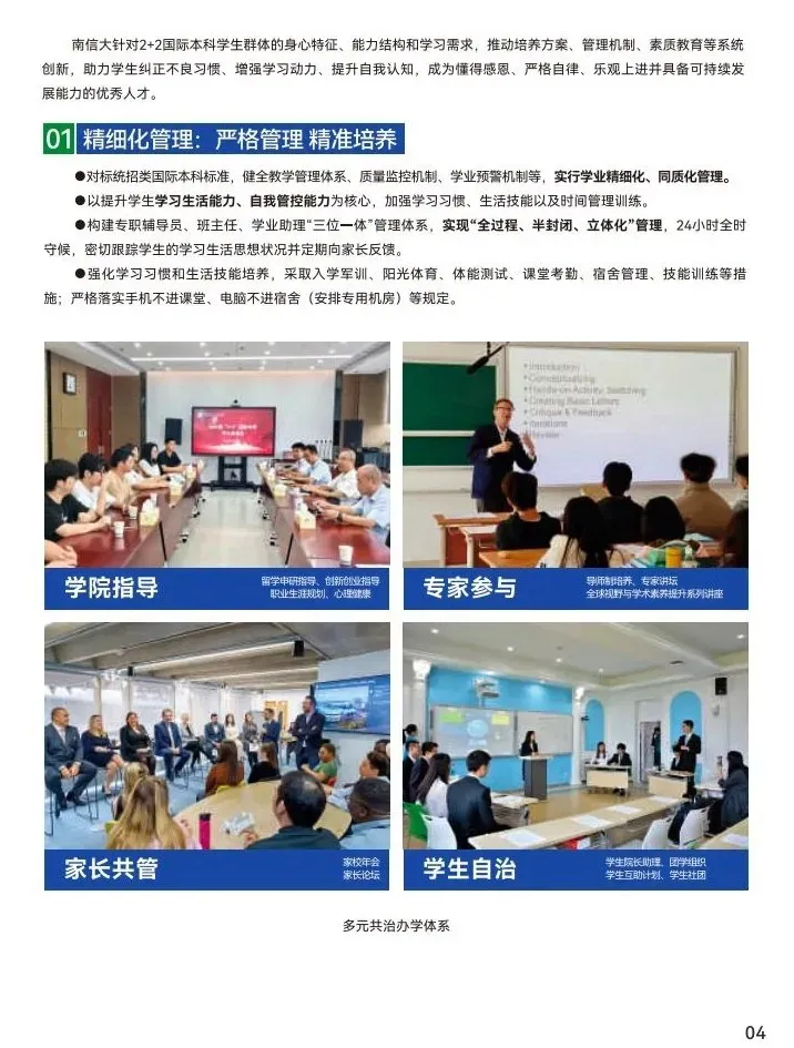南信大针对2+2国际本科学生群体的身心特征、能力结构和学习需求,推动课程设计、管理机制、素质教育等系统创新,旨在激发学生学习动力和潜能,查漏补缺,迎头赶上!