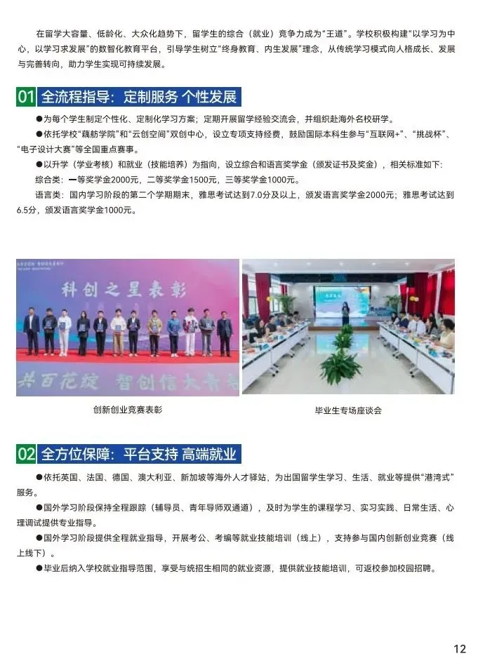 ● 国外学习阶段提供全程就业指导,开展考公、考编等就业技能培训(线上),支持参与国内创新创业竞赛(线上线下)。