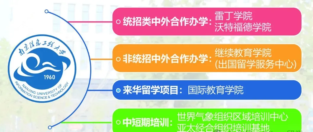 南京信息工程大学享有“气象人才摇篮”之美誉,在地球科学领域具有世界性影响力。其前身南京气象学院始建于1960年,1978年被确定为全国重点大学,2017年入选国家“双一流”建设高校和江苏高水平大学高峰计划A类建设高校。学校综合实力不断提升,2023年分别位列Times、ARWU、QS、U.S.News四大排行榜中国内地高校第56位、第74位、第67位、第46位。学校因创新、担当、务实等特质,被盛赞为“最温暖大学”“最硬核大学”等,是发展最快、最富活力、最具潜力的“双一流”高校之一。学校中外合作办学水平全国一流,是江苏省唯一拥有两个本硕一体化中外合作办学机构的高校。