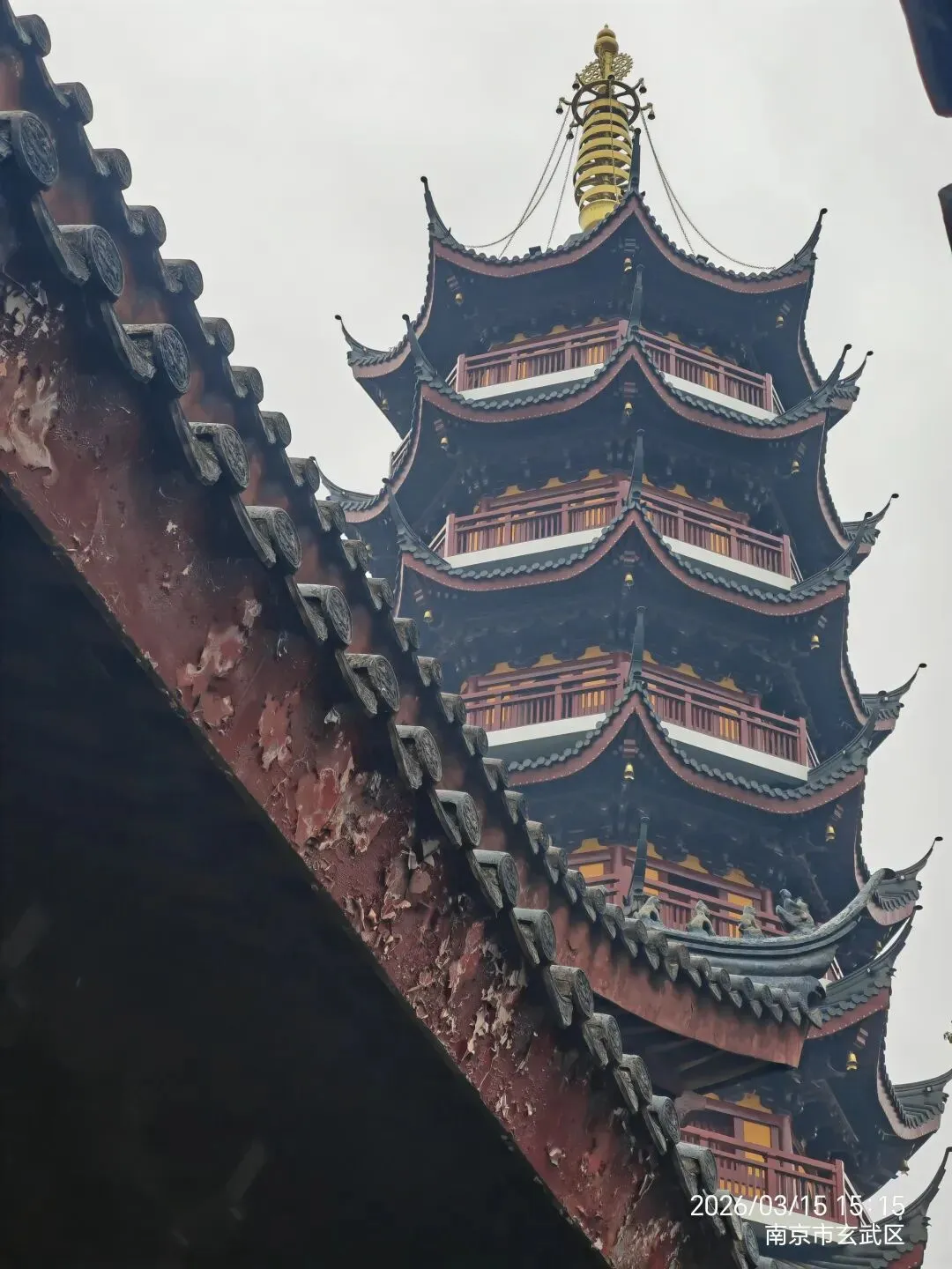 转战古鸡鸣寺,4.16元车资换来10元门票,古刹黄墙在雨雾中晕开一片模糊的暖色。登药师塔远眺,玄武湖的烟波尽收眼底,可这视野的奖赏,代价是又一番筋骨的消耗。