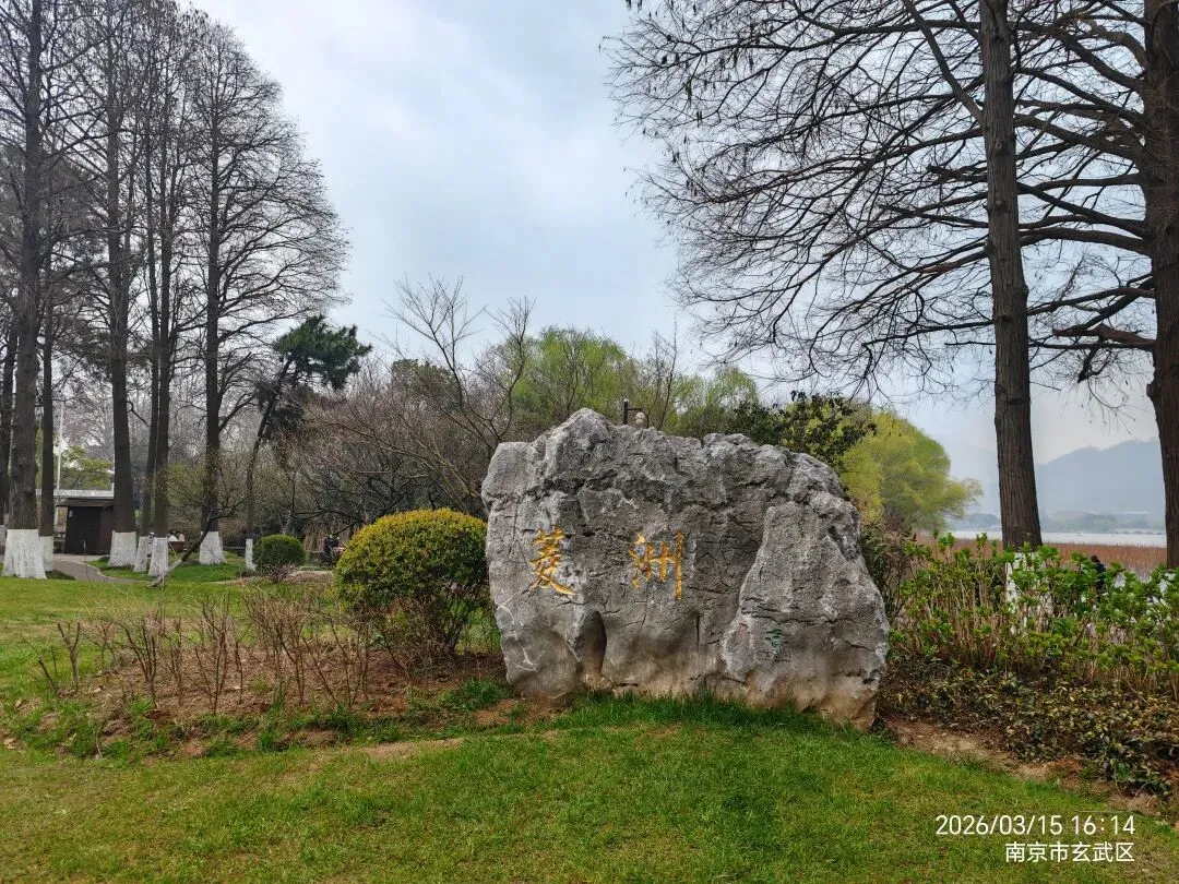 玄武湖的环湖路,才是真正的炼狱。 自解放门至玄武门,台城堤岸引我踏上凌洲、环洲、樱洲的连环征途。雨丝渐密,湖风裹挟着水汽扑面而来,冲锋衣的防水层在此刻显得如此单薄。每一步踏在环湖步道上,都清晰听见膝盖承受冲击的闷响。樱洲的石子路尤其磨人,湿滑间更需步步为营,足底传来的酸胀感直冲脑门。两万五千步,数字背后是脚掌与大地无数次的撞击,是小腿肌肉纤维的持续悲鸣。