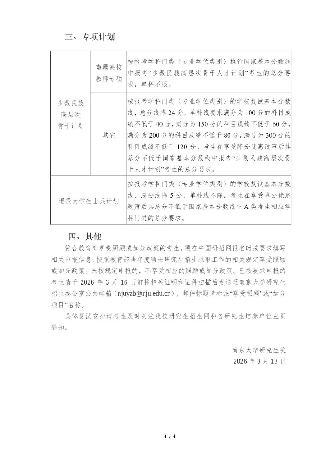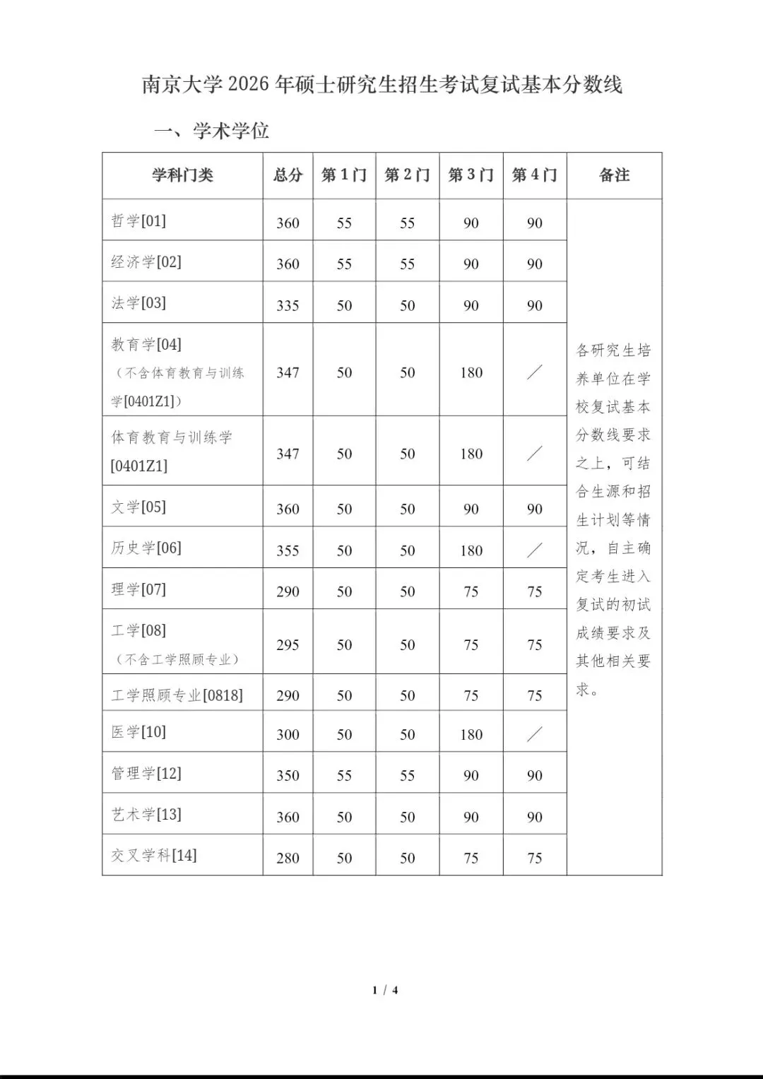 >2026年南京大学硕士研究生招生考试复试基本分数线