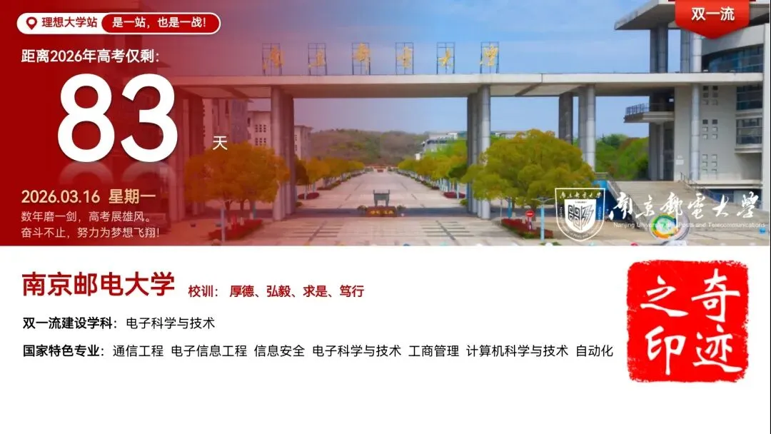 南京邮电大学(Nanjing University of Posts and Telecommunications,简称:南邮),是中国教育部、工业和信息化部、国家邮政局与江苏省共建高校,国家“双一流”建设高校,位于江苏省南京市。学校入选国家“2011计划”“111计划”、教育部“卓越工程师教育培养计划”“新工科研究与实践项目”、国家级大学生创新创业训练计划,是国际电信联盟首个学术成员,CDIO工程教育联盟成员单位。