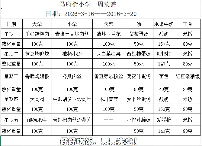 >南京市马府街小学2025-2026学年第二学期第3周菜谱