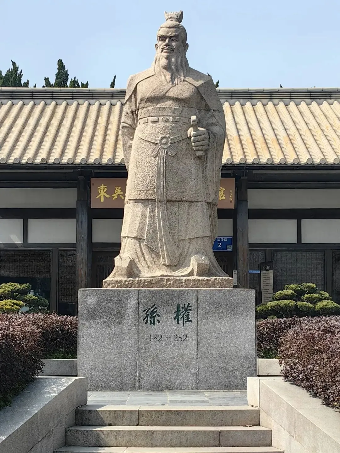 馆前的孙权塑像气势凛然,身披戎装,目光坚定,仿佛仍在俯瞰江东大地,运筹帷幄之中。站在雕像前,我心中敬意油然而生——正是这位英雄,开启了南京作为都城的历史,是南京六朝古都当之无愧的第一位帝王。